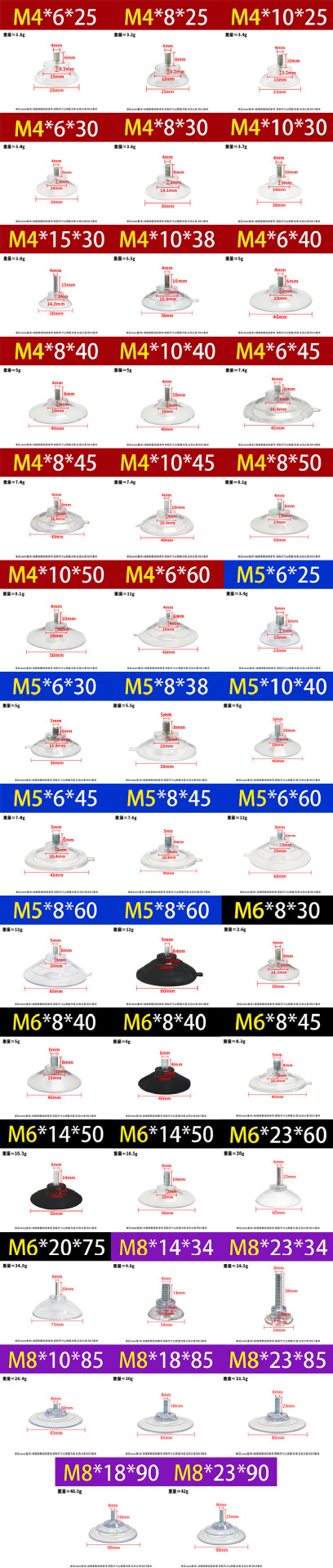螺丝吸盘m5m6m8切肉机带螺杆带牙防滑固定玻璃茶几透明环保强吸力