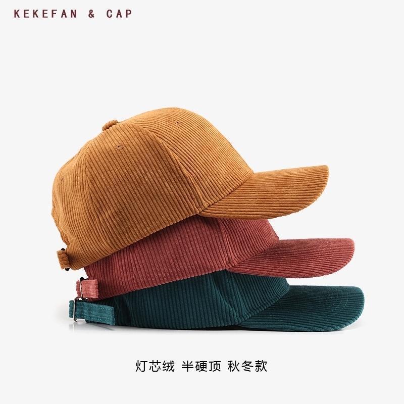 灯芯绒纯色光板鸭舌帽女秋冬日系潮男户外女运动保暖弯檐棒球帽