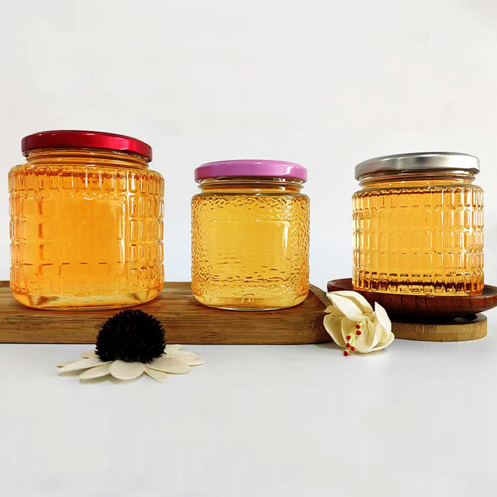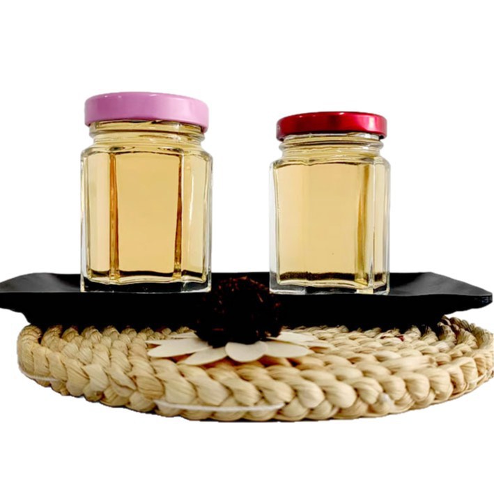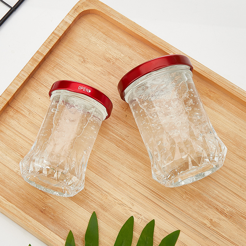 スポット卸売六角形ハニーボトル透明ネジ蓋ガラスピクルスボトルジャム密封ボトルガラスボトル密封缶