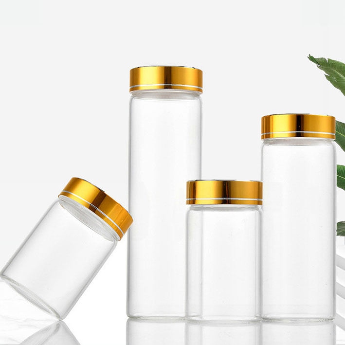 メーカー在庫あり 47mm ゴールドキャップガラスボトル 冬虫夏草沈香コントロールボトル 透明ガラス詰め替えボトル 空ボトル 密封缶