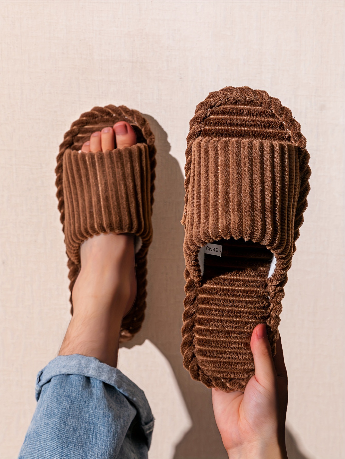 2025 クロスボーダーメンズコーデュロイストライプオープンスリッパ (ニュートラル) 屋内コーデュロイスリッパ