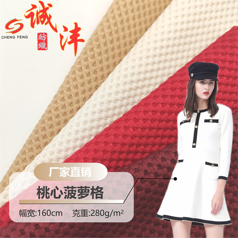 小さなパイナップルチェック柄ニットジャカードコーンファブリックポリエステルピーチハートチェック柄春と秋のパンツトップスウェア服生地