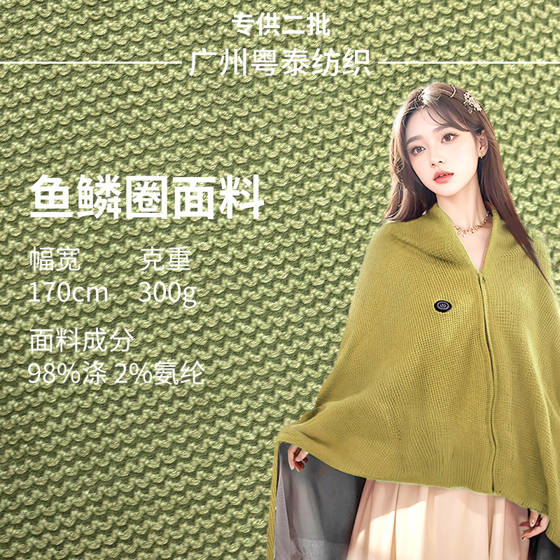 人気の 300 グラム厚い針魚鱗サークル生地ウールテクスチャジャカード加熱電気毛布ショール生地