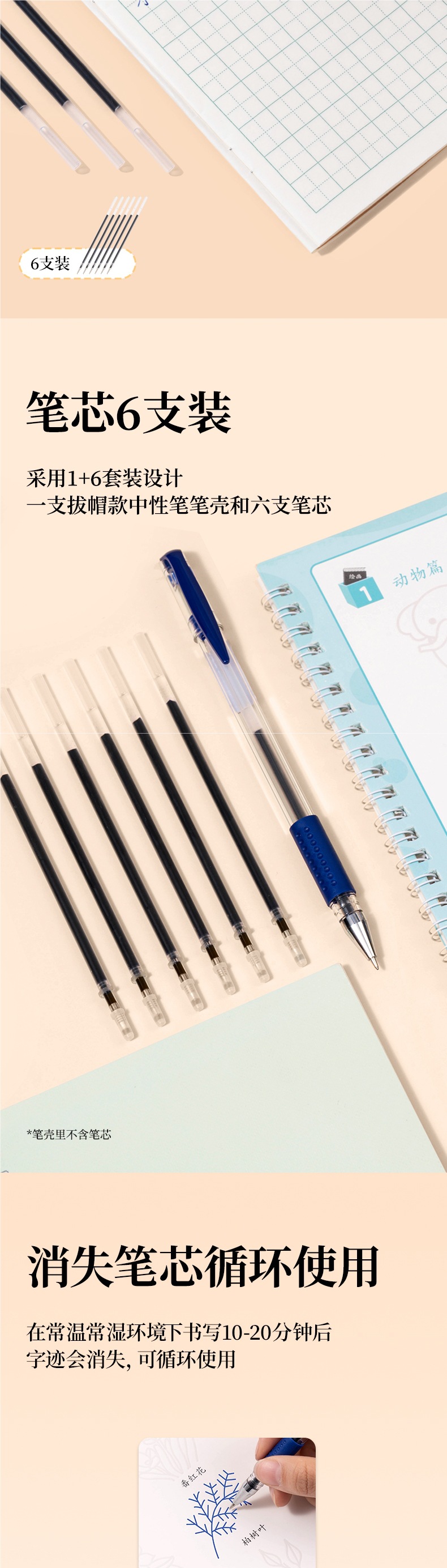 学生や子供向けの自動消去ペン練習用の消えるペン、ペンを跡を残さず消去できるトレーニング用のコピーブック、消去可能なコピー
