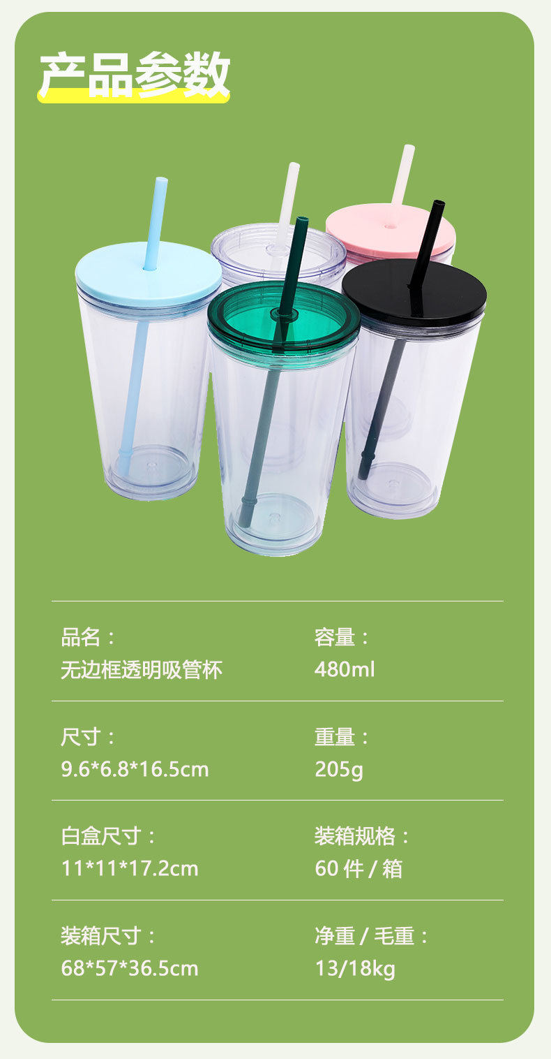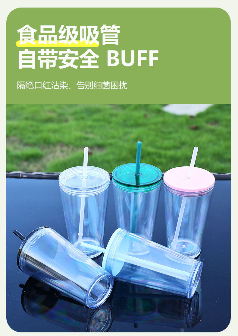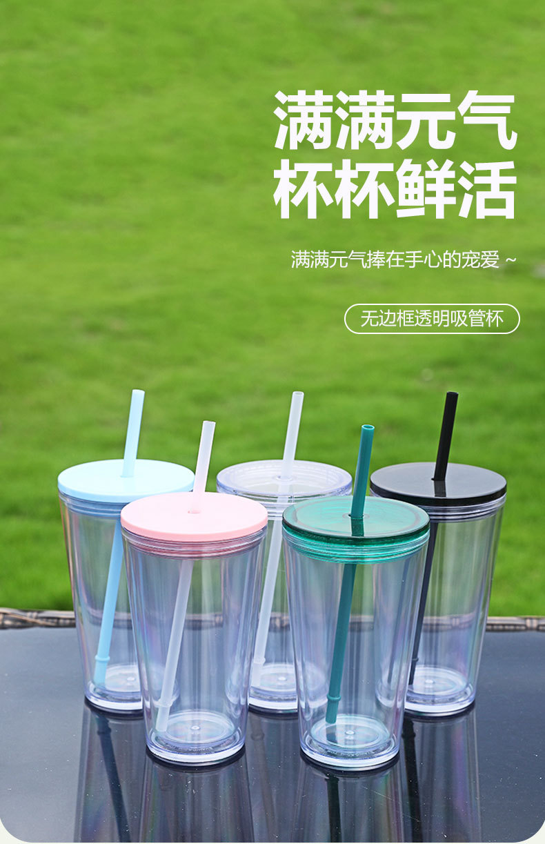 工場直接供給 16 オンス二層プラスチックストローカップボーダーレスクリエイティブポータブルカップインターネット有名人のプラスチックウォーターカップ