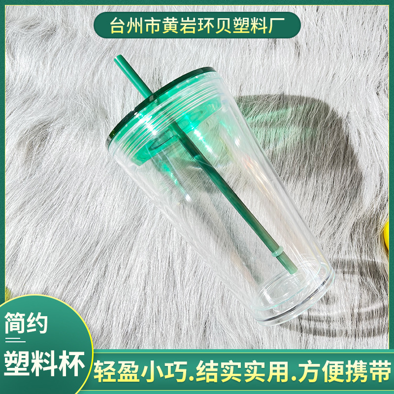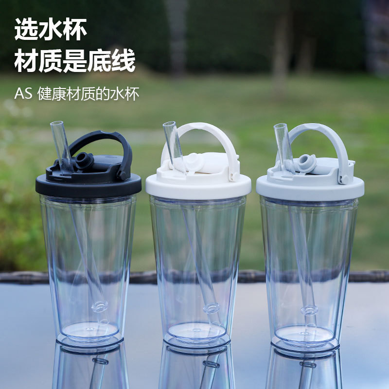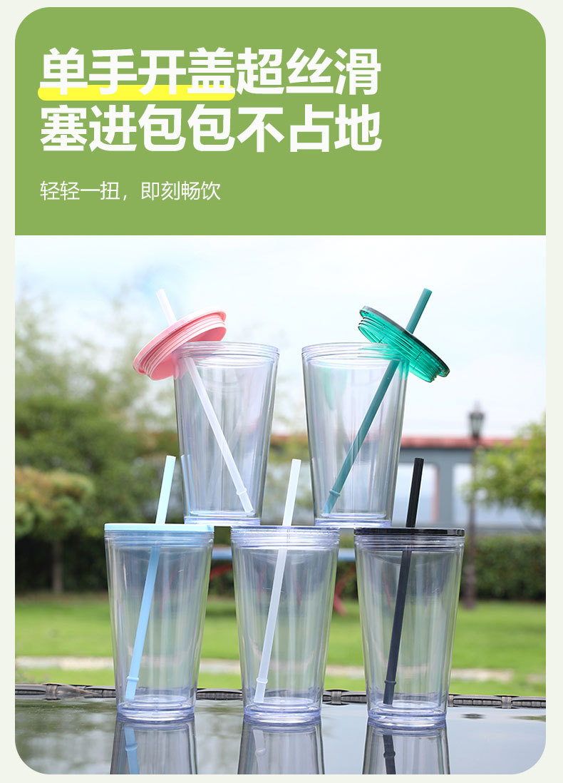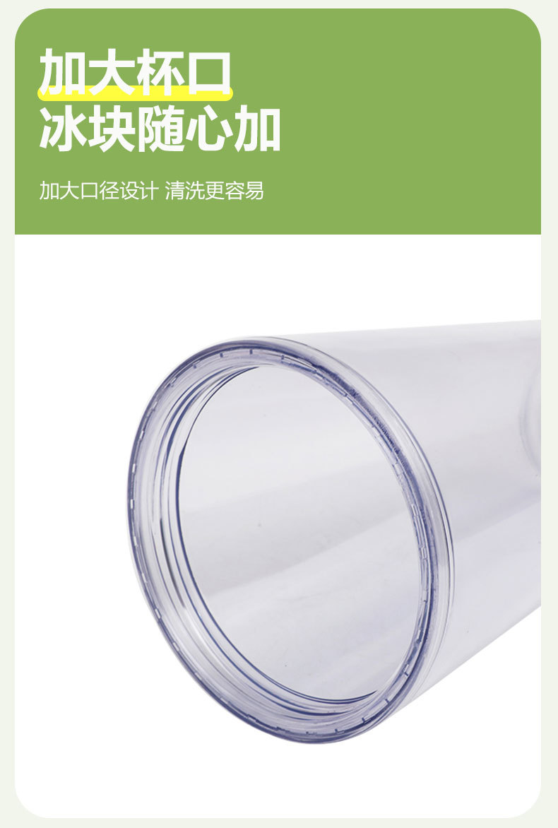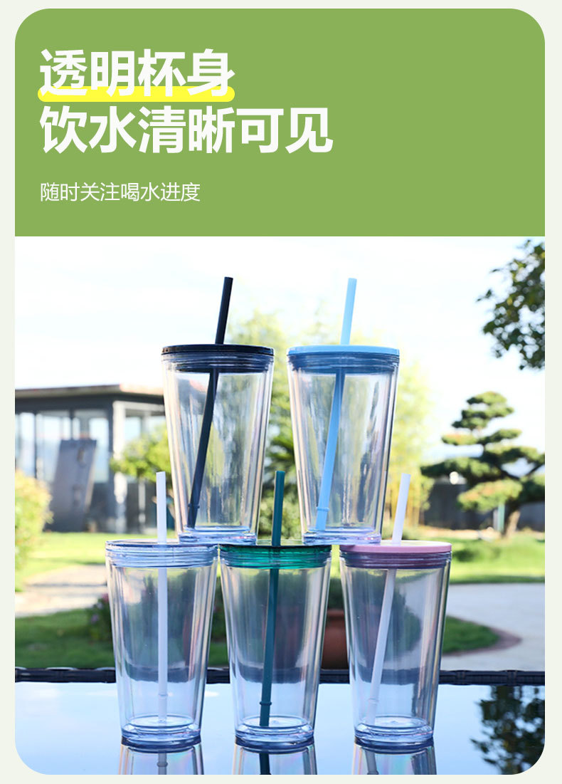 新型クロスボーダー直供大容量欧米ファッション二重厚プラスチックカップシンプル透明屋外ストローカップ