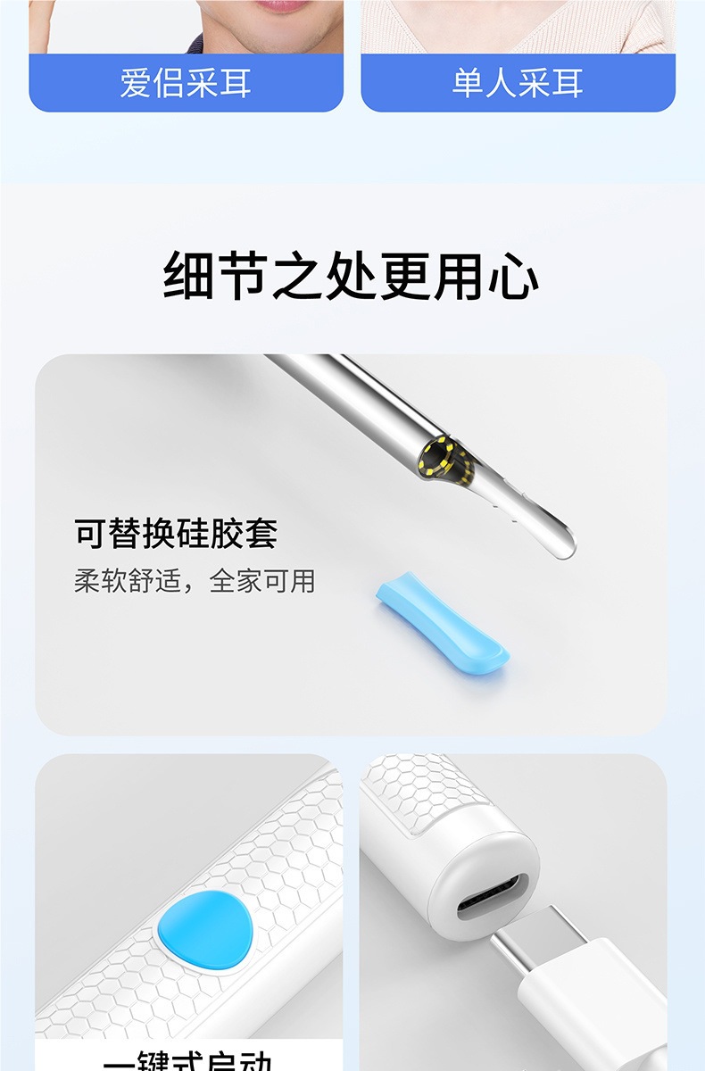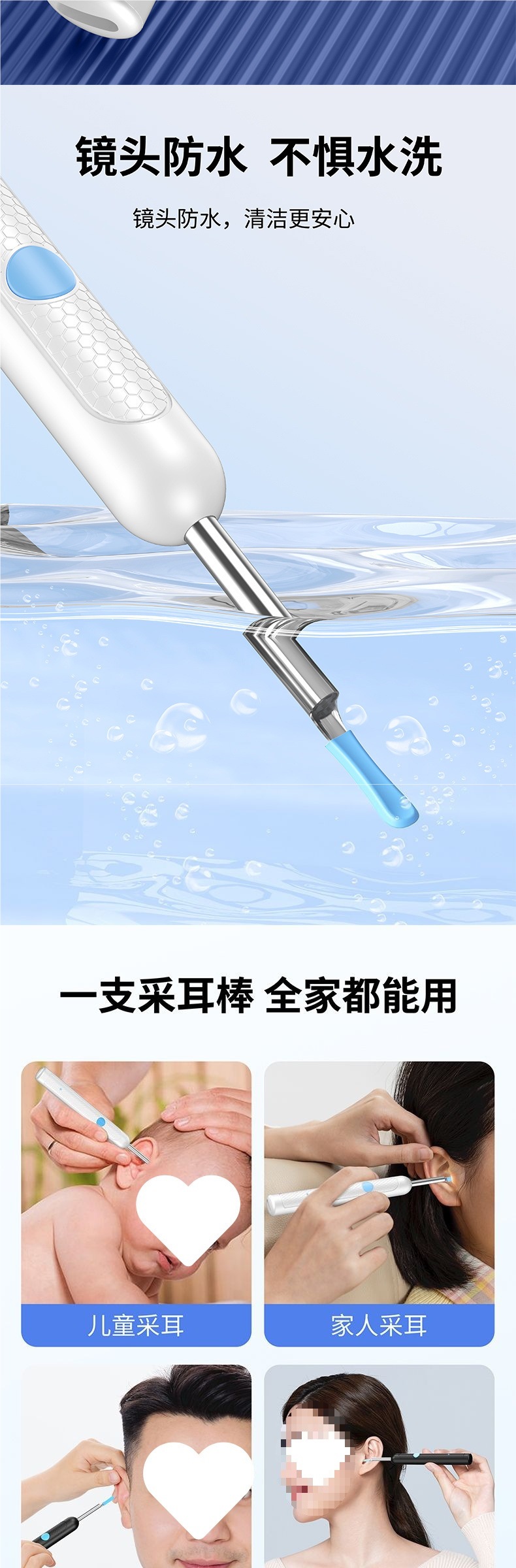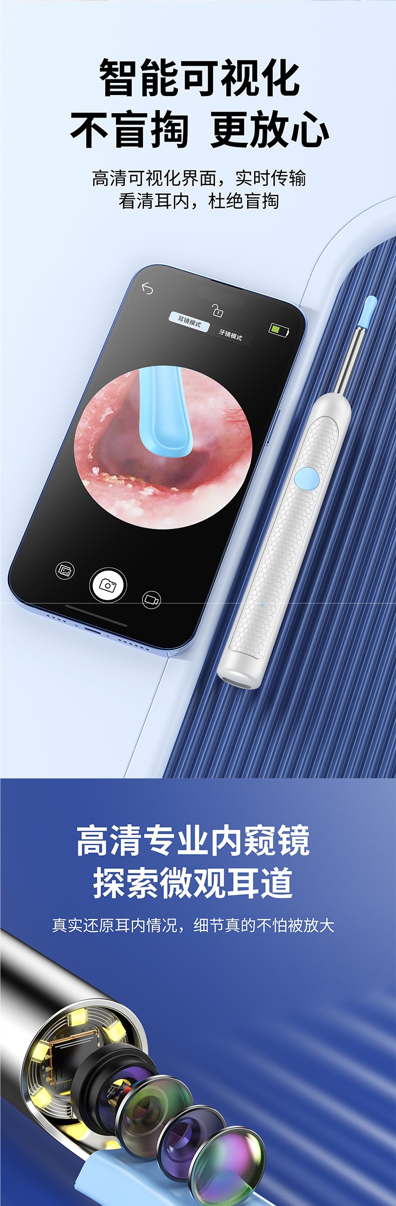 大人用ワイヤレスビジュアルイヤースクープ、ユニバーサル超クリアイヤースクープ、ライト付き、携帯電話に接続可能、子供用イヤースクープ