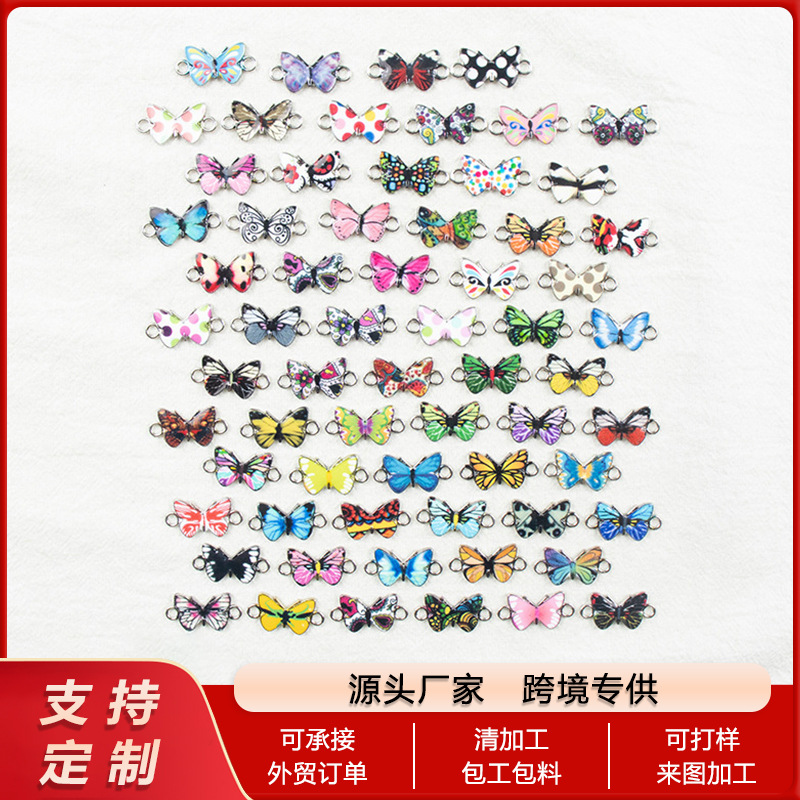 韓国風ダブルバタフライオイルドロップ合金アクセサリーシングルペンダントネックレスブレスレットチャームDIYジュエリー材料卸売
