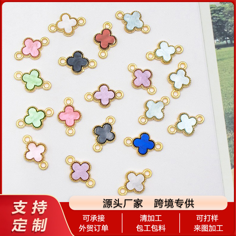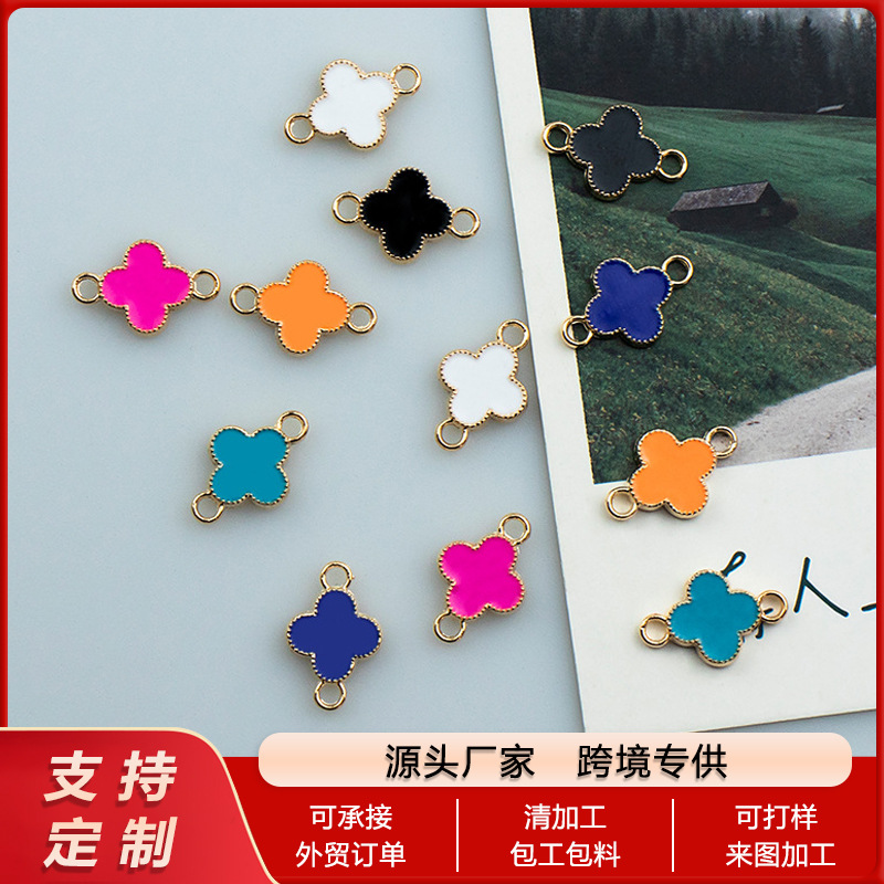 韓国風ダブルクローバー油滴ペンダント合金イヤリングブレスレットDIYアクセサリー手編み越境人気商品