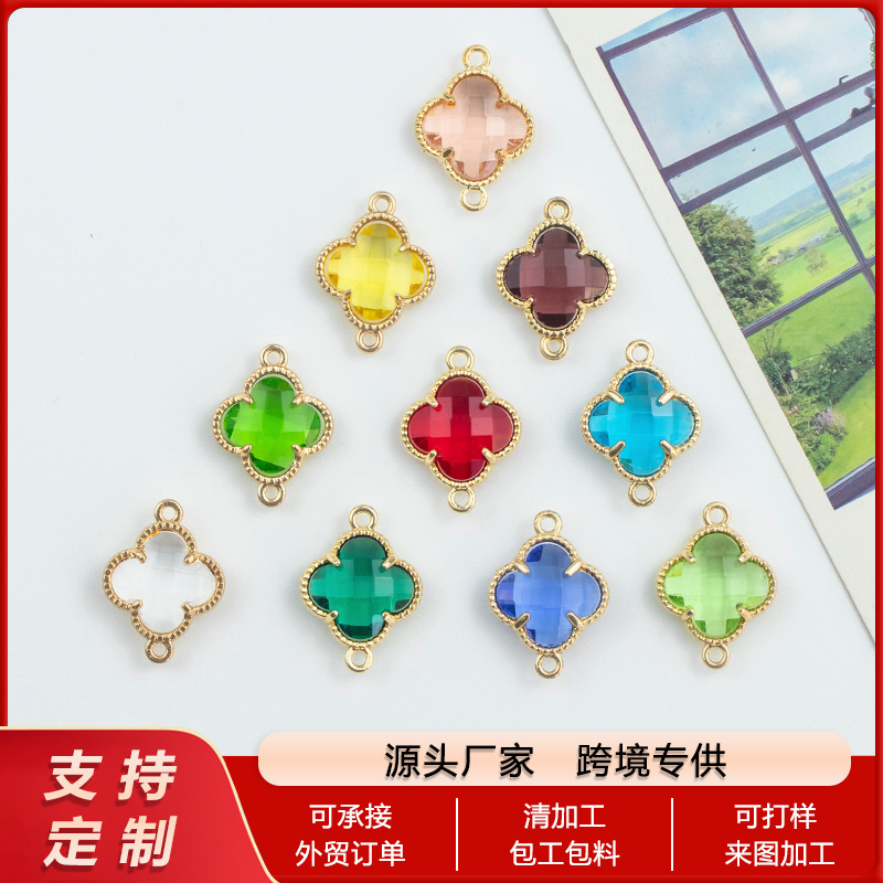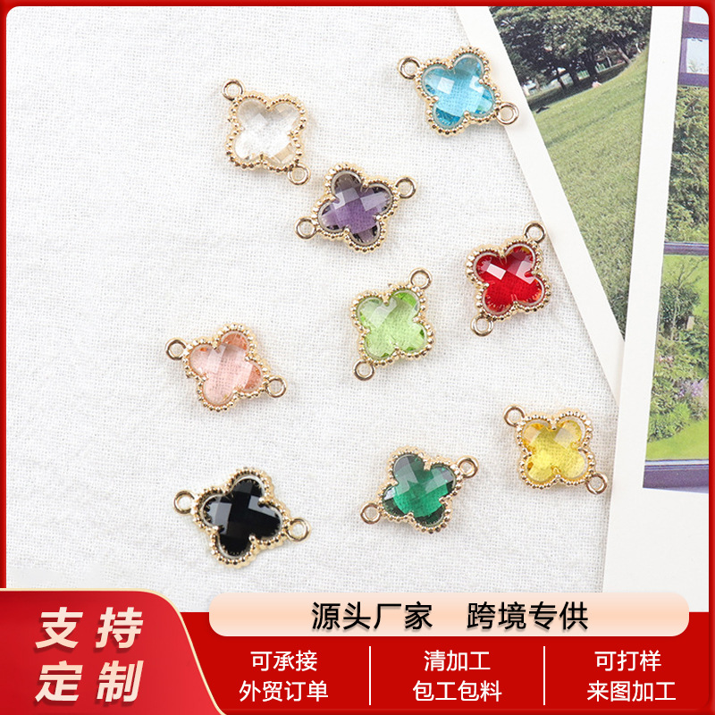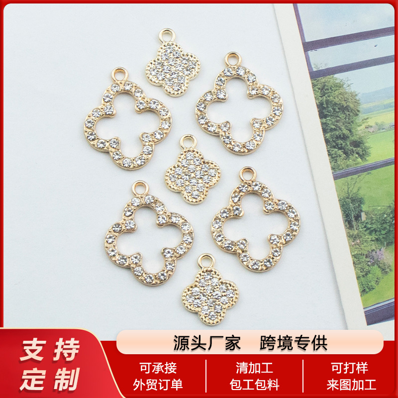 韓国版四つ葉のクローバー diy ダブルペンダント合金象嵌アクセサリーペンダントイヤリングブレスレット手織り小さなペンダント卸売