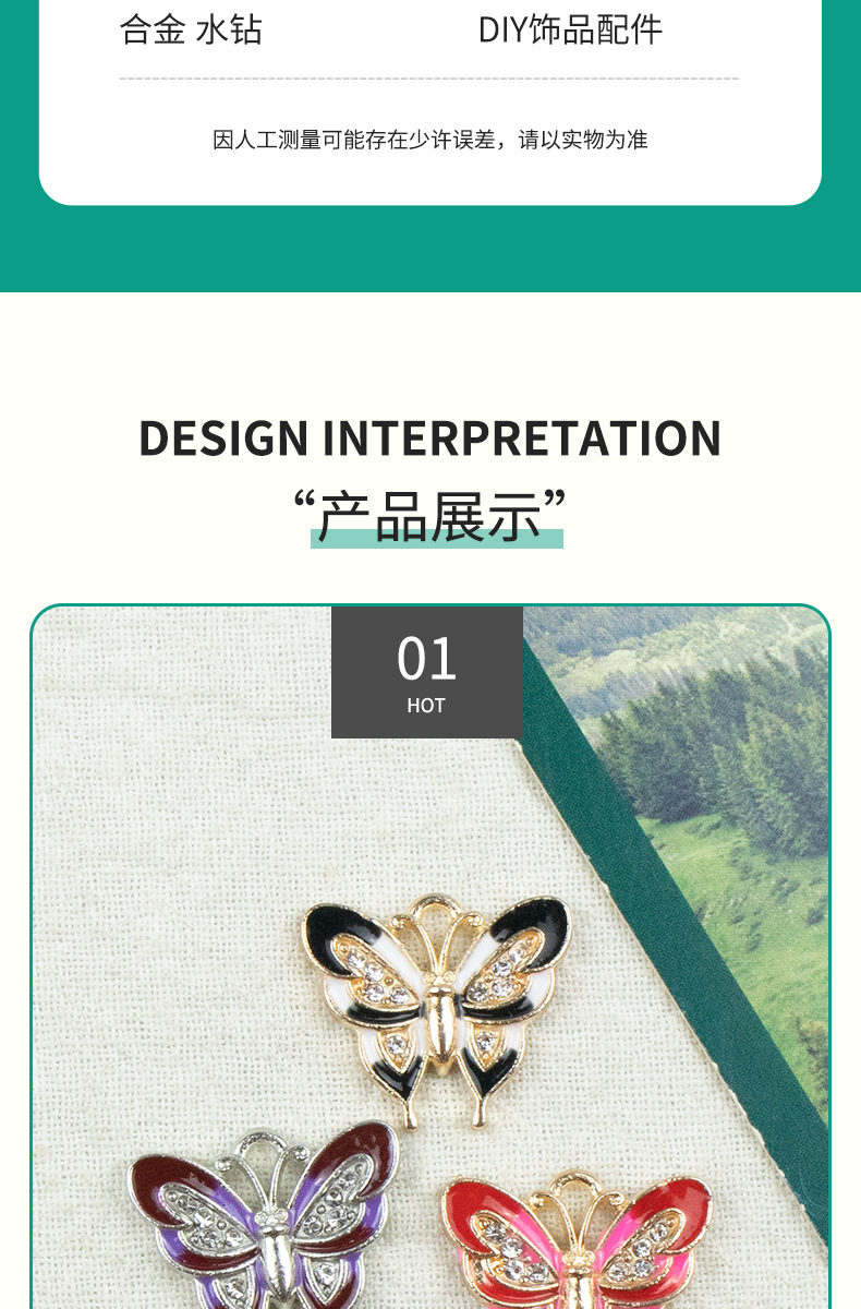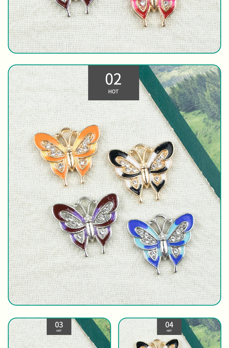 変色防止合金製ジュエリーアクセサリーDIY素材、オイルコーティングされたラインストーン付き蝶モチーフペンダント、タッセルヘアアクセサリー卸売