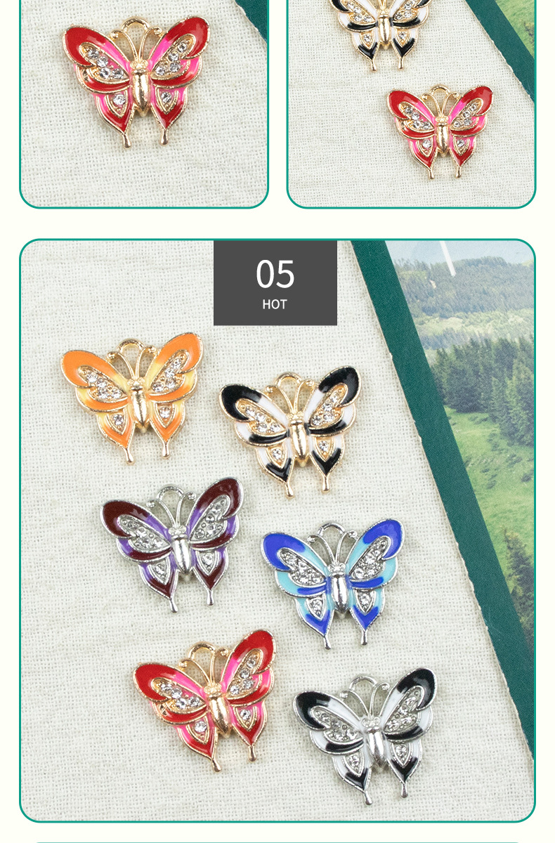 10個/軽豪華な高級感を包んで、ダイヤモンドを入れて、美しい蝶のペンダントdiyアクセサリーのアクセサリーを飾って飾ります。