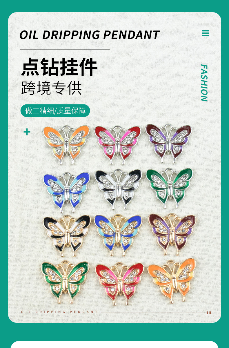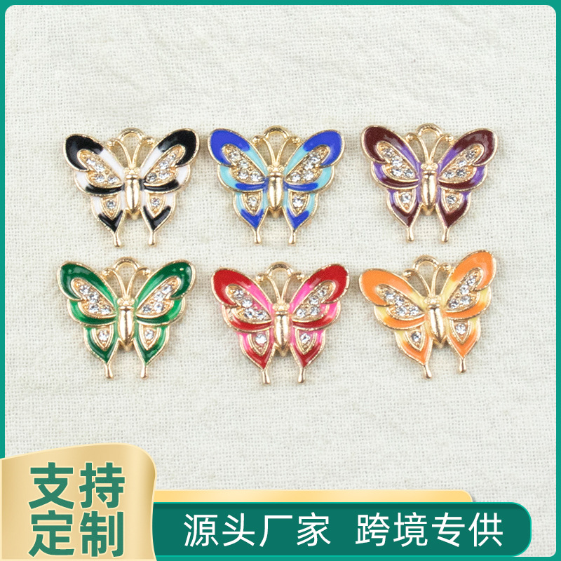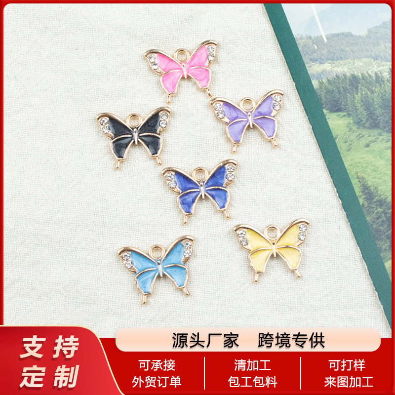 クロスボーダー亜鉛合金中空オイルドリルラインストーン蝶ペンダントジュエリーアクセサリーキーホルダーペンダント diy ジュエリーアクセサリー