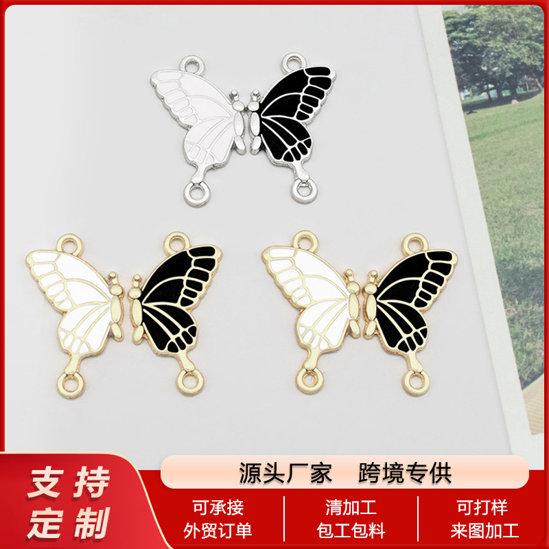 ジュエリー diy アクセサリー韓国スタイル黒と白の蝶パターンオイル滴下合金ネックレスブレスレットシングルペンダントアクセサリー