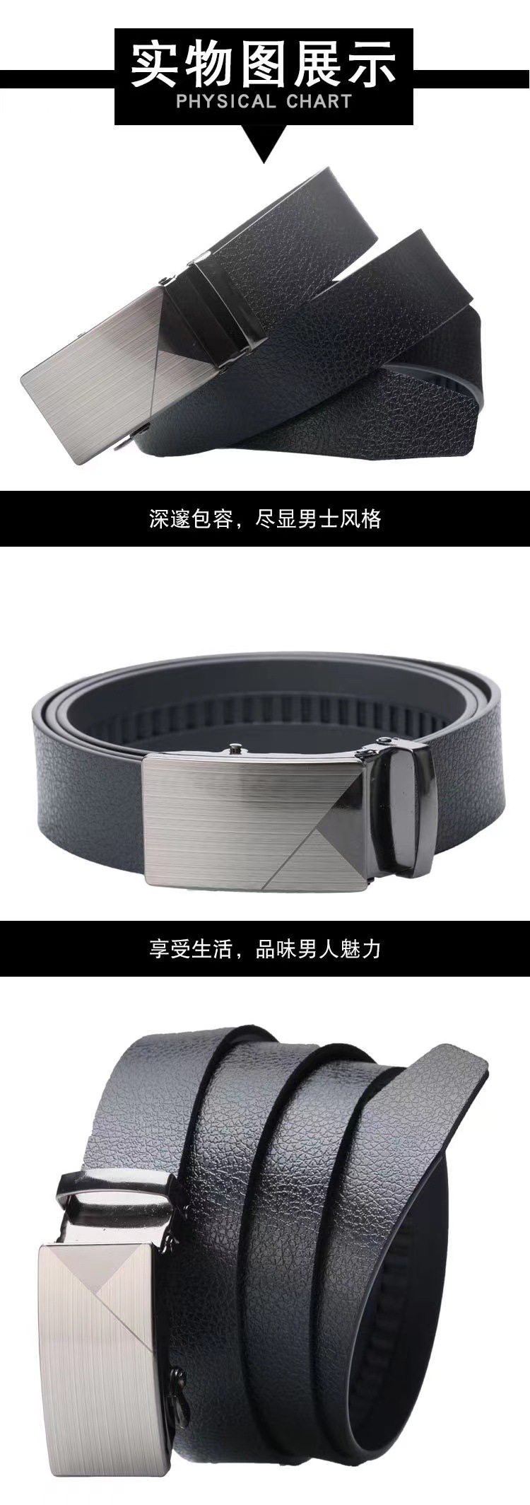 国境を越えた対外貿易男性ベルト自動バックルベルトは真皮純黒鉄バックルTEMU希音専供メーカー卸売り