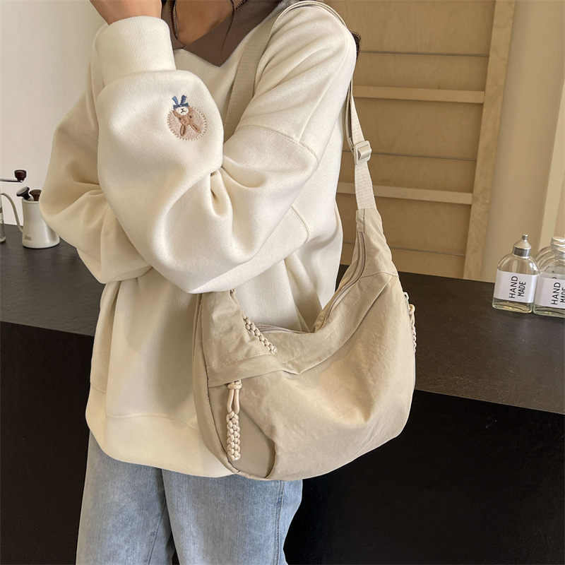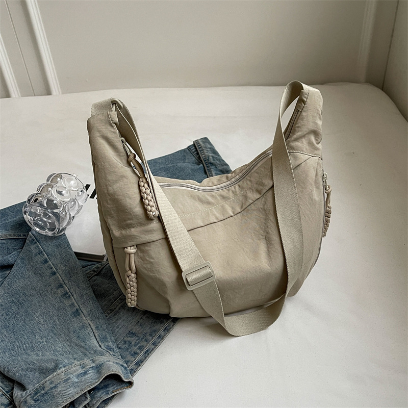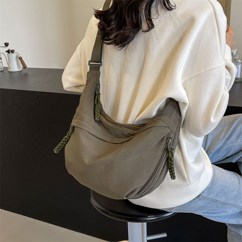 女性用バッグ新スタイル 2025 和風文学風ナイロンバッグ大容量レディースクロスボディバッグ多用途旅行餃子バッグ