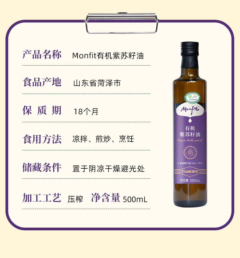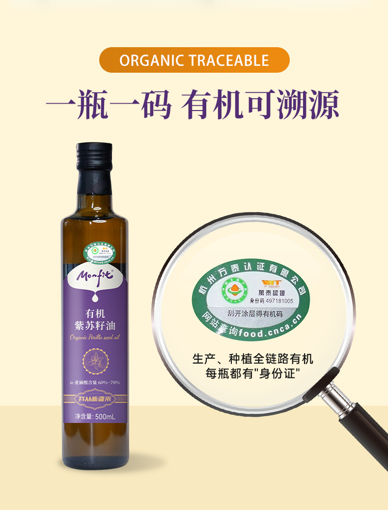 MONFIT 有機シソ種子油 500 ミリリットル卸売物理圧搾シソ種子食用植物油は直接飲むことができます
