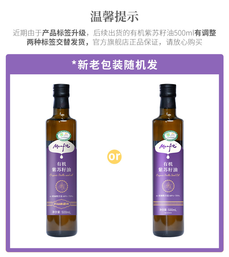 有机纯紫苏籽油250ml低温一级冷榨纯苏子油食用油热炒口服旗舰店