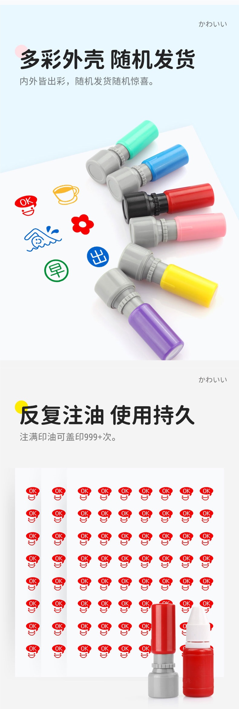 日本製ミニバイレかわいい子供用シールハンドブック浸透感光シール装飾スタンプ漫画スマイリーフェイスレッド