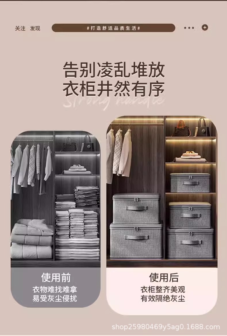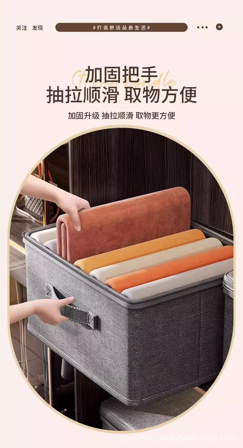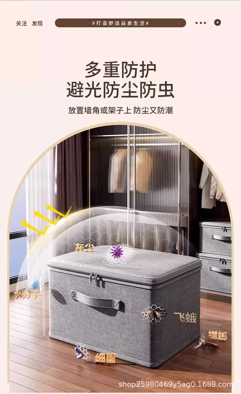 大号布艺收纳箱整理箱防尘衣服收纳箱带盖折叠收纳盒储物盒收纳筐