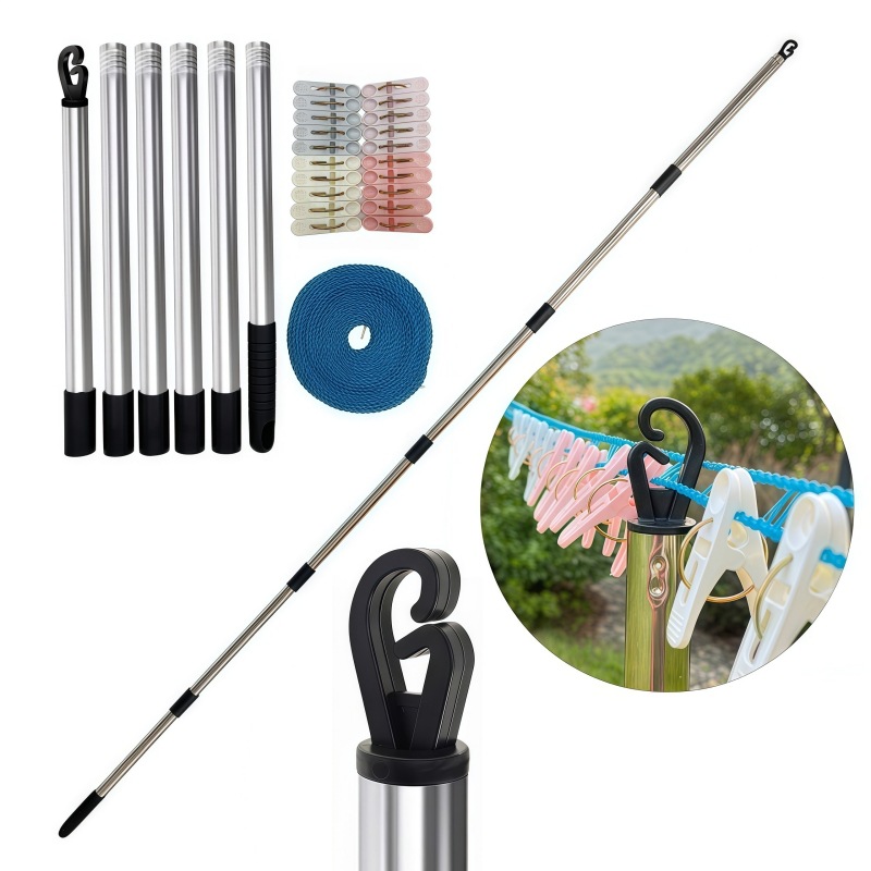 跨境爆款晾衣钩支撑杆 室外洗涤支撑架 尼龙晾衣绳晾衣夹晾衣套装