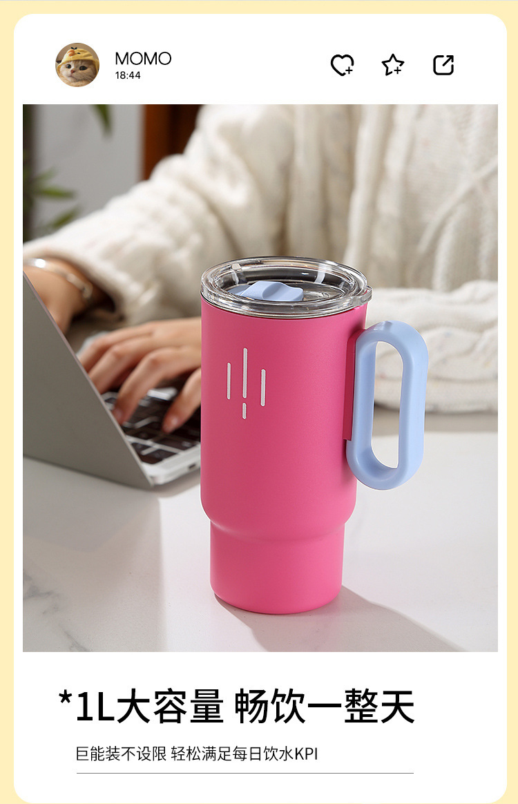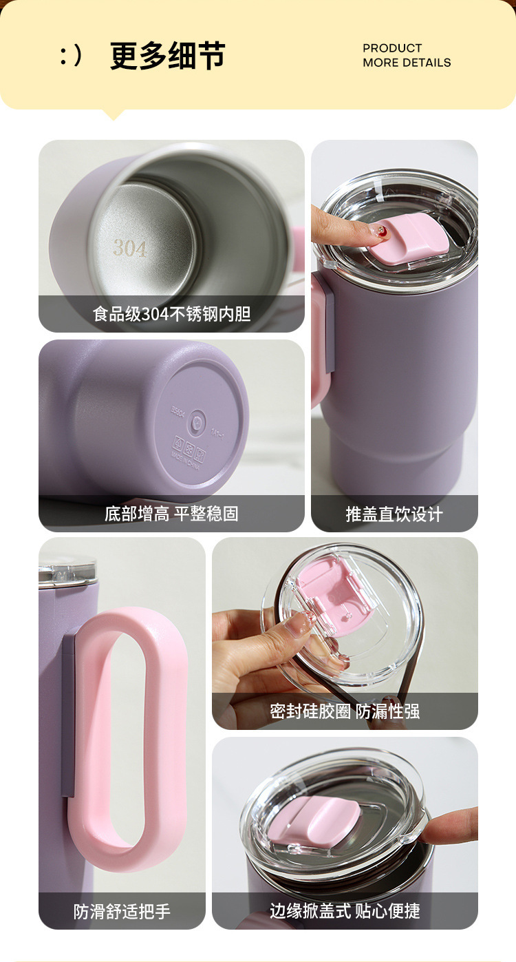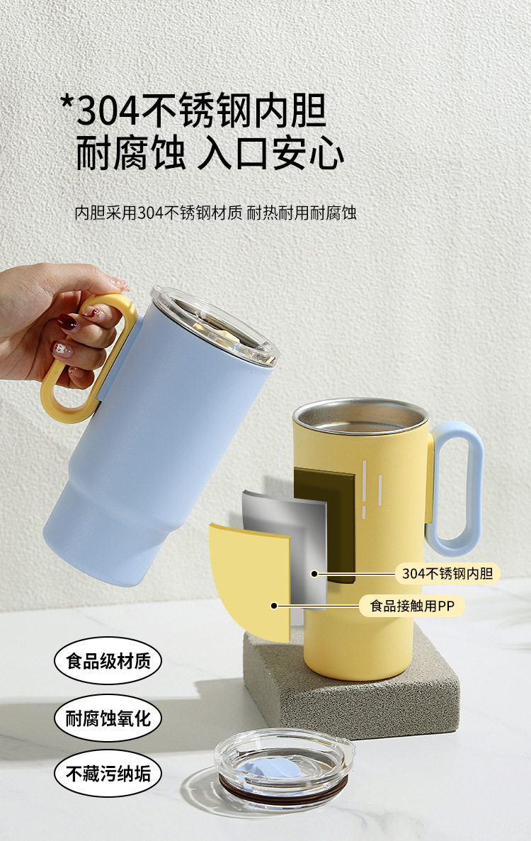 クロスボーダー新型ストローマグカップ大容量保温保冷アイスカップステンレスハンドルカップダブルドリンクモード