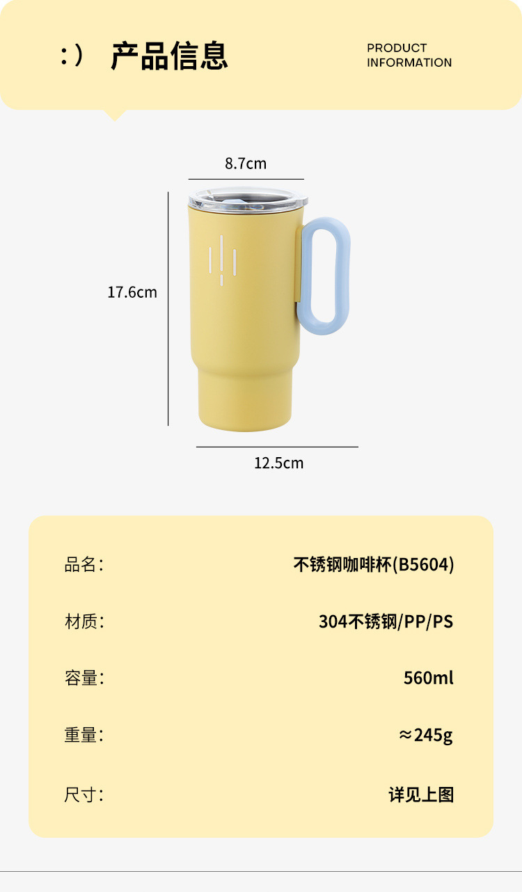 国境を越えた新型直飲マーク保温保冷携帯車カップ大容量ステンレスハンドル付きコーヒーカップ