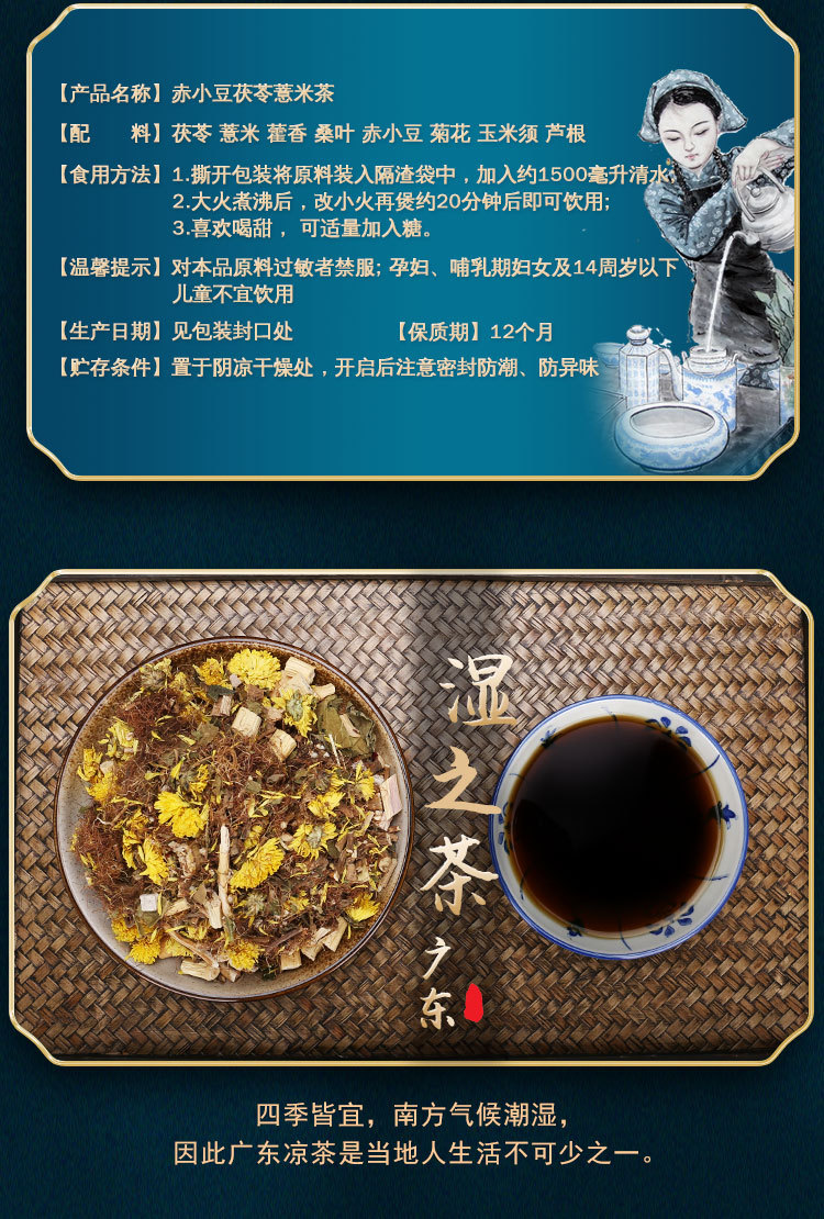 湿気を取り除く広東ハーブティー、重茶、熱を取り除き、火を抑える、湿気と熱の健康茶、建設現場の商業ハーブティーパック、全箱卸売