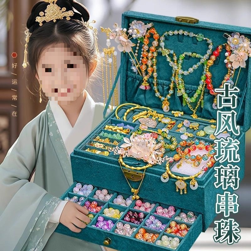 子供用古代風ブレスレットビーズ手作りDIY素材ギフトボックス女の子誕生日プレゼントジュエリーブレスレット知育玩具