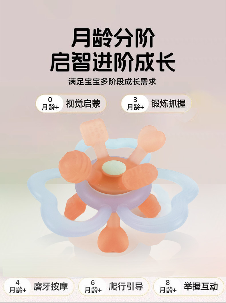 牙胶婴儿食品级硅胶可咬牙牙胶乳头形状双花牙胶宝宝咬咬乐玩具