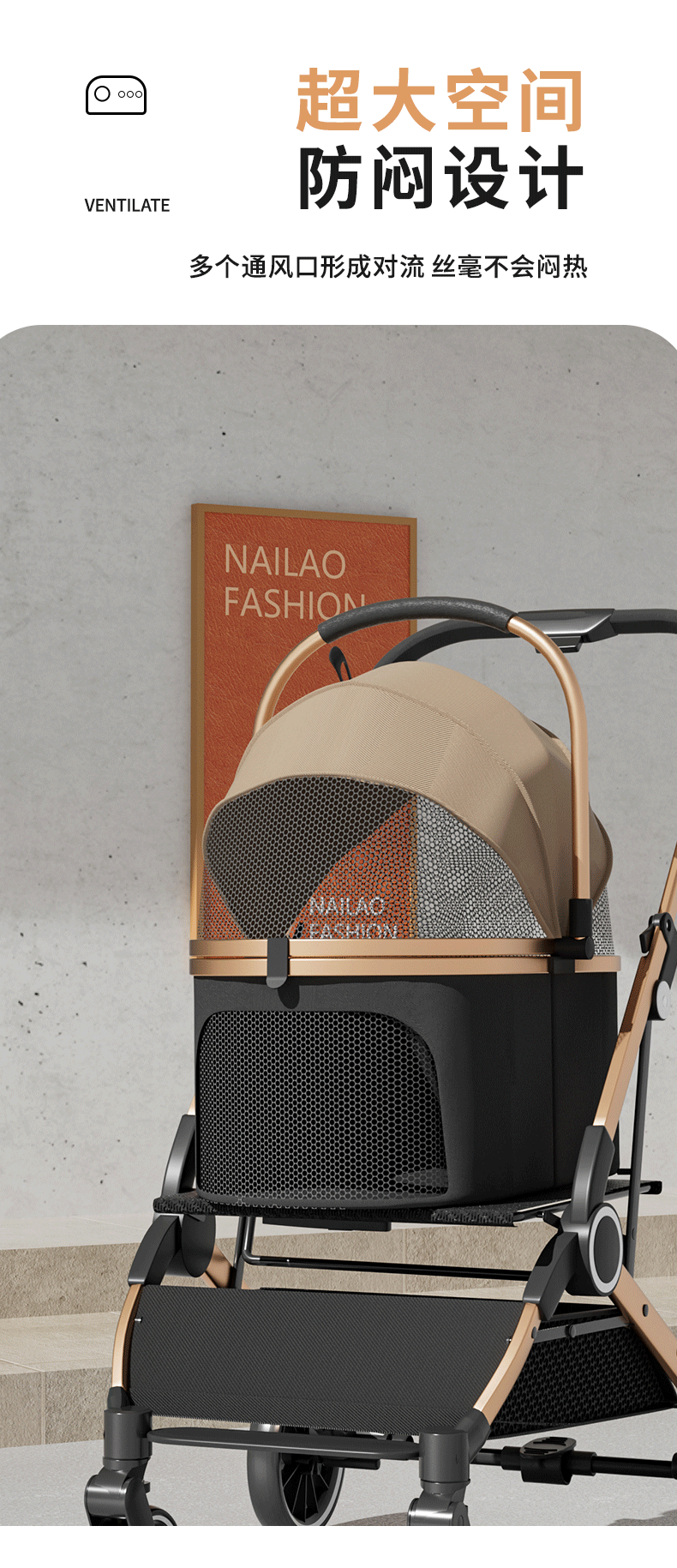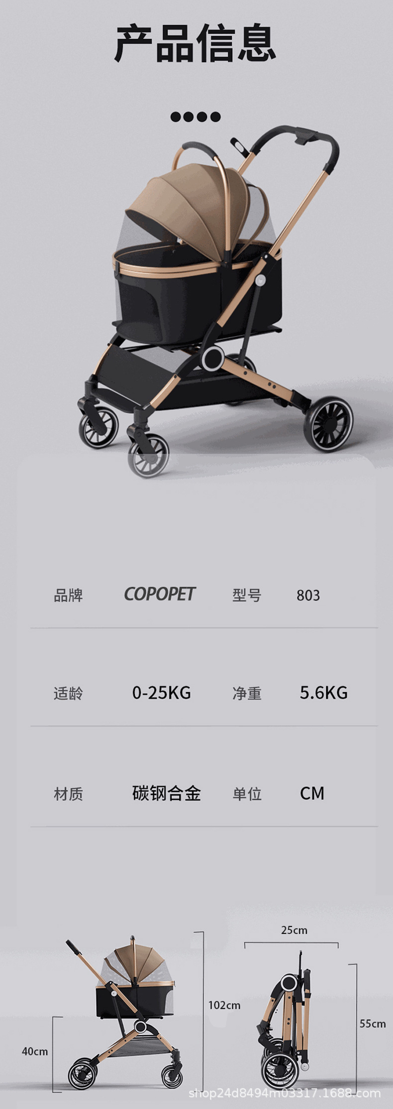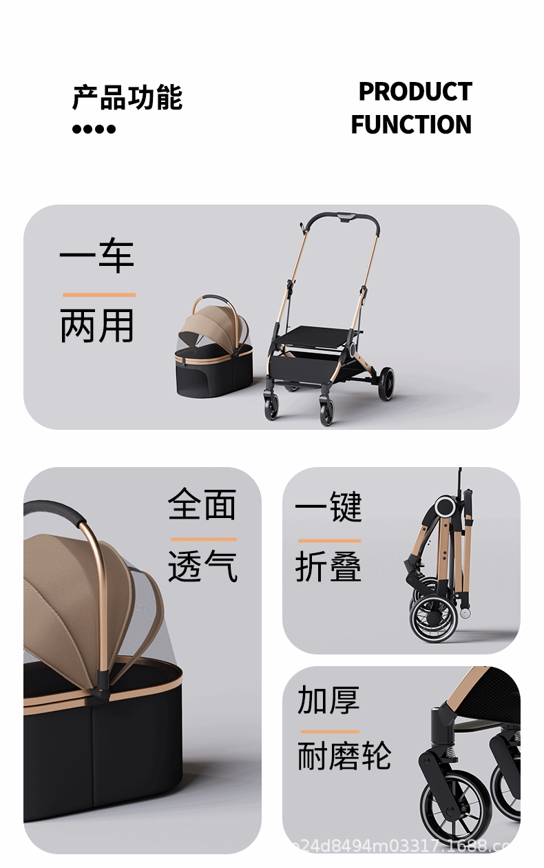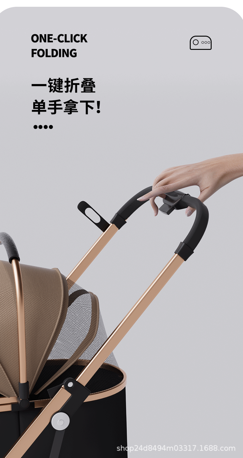 现货源头工厂中小型犬宠物手推车一键折叠六重减震遛狗车包分离猫