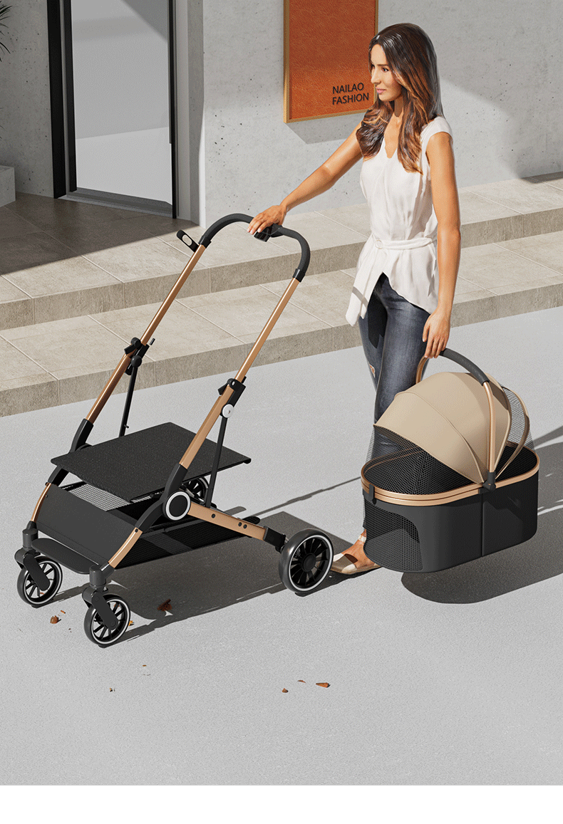 工場卸売ペットベビーカーアルミ合金軽量折りたたみ衝撃吸収分離外出猫と犬のクロスボーダー外出ベビーカー