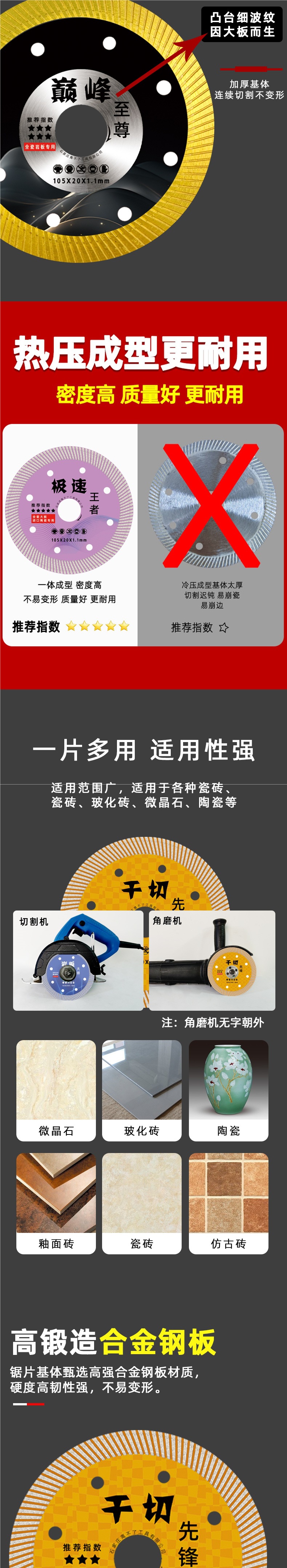 セラミックタイル切断刃、無歯鋸刃、セラミックタイル、ガラス化タイル、ロックプレート、マーブルマシン、セラミックエッジフリー乾式切断