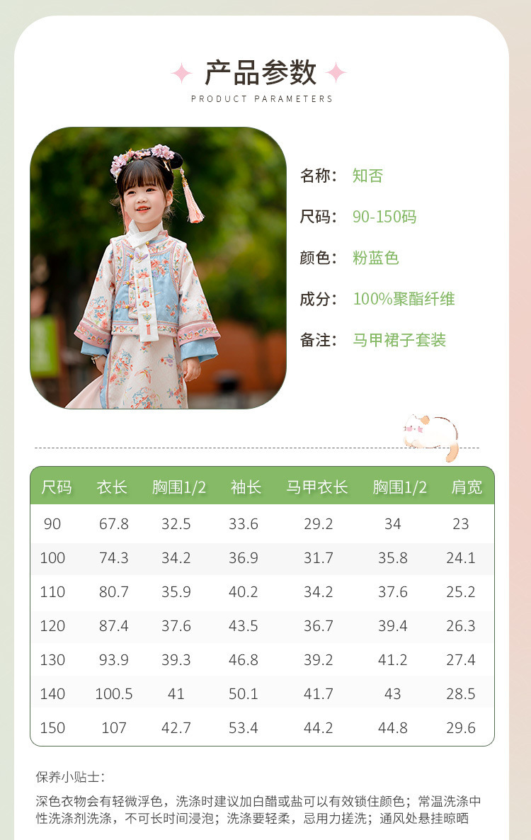 儿童格格服女童汉服薄款清朝套装宫廷风夏季款马甲旗袍古装中国风