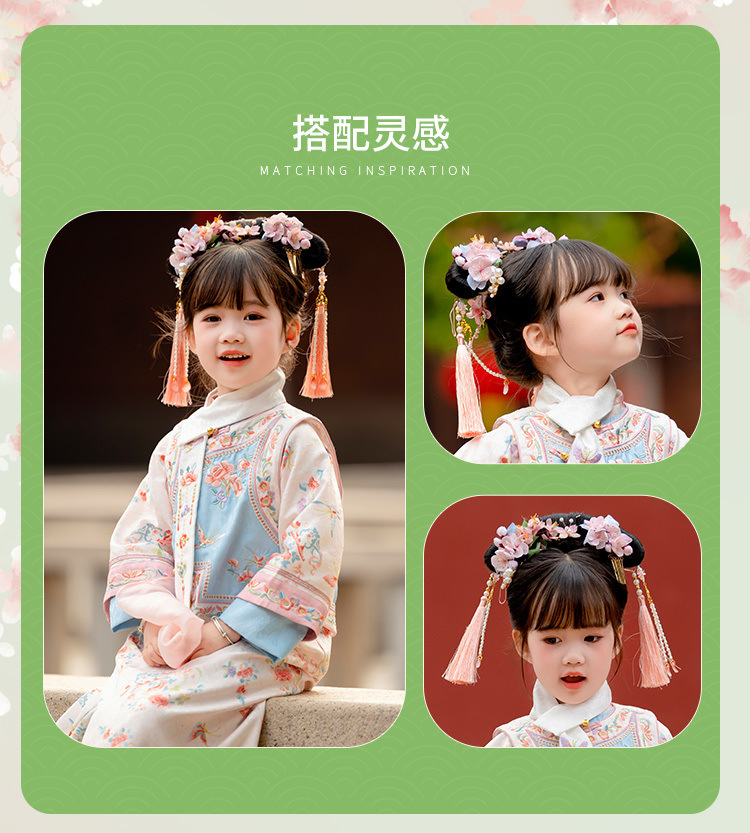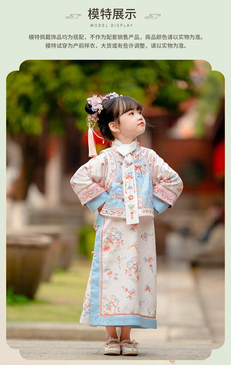 新款儿童春秋季格格清朝宫廷服2024国风印花女童汉服古装旗袍套