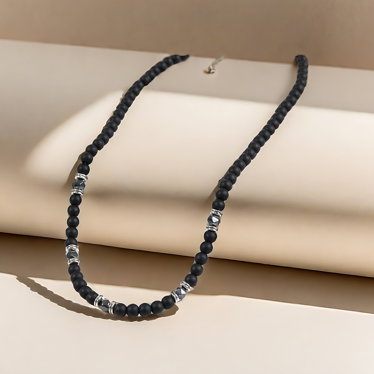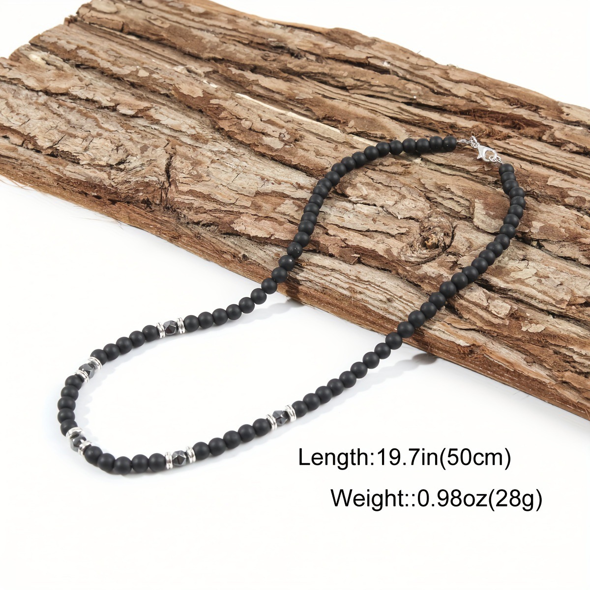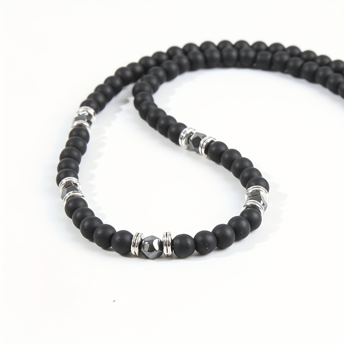 2025 クロスボーダー新ヨーロッパとアメリカ 1 ピースファッション黒つや消しビーズネックレスメンズヒップホップスタイル