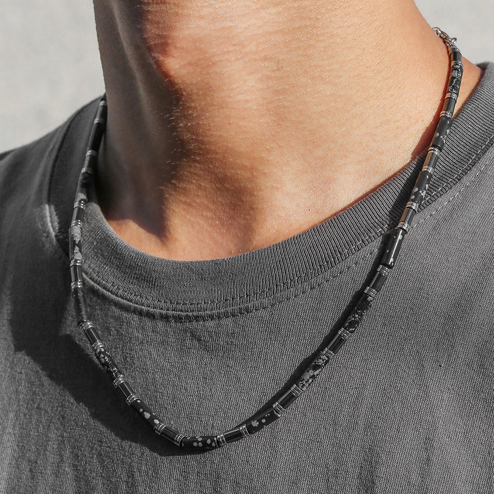 厂家批发天然雪花黑胆石锁骨链手工串珠半宝石男士短款项链不锈钢