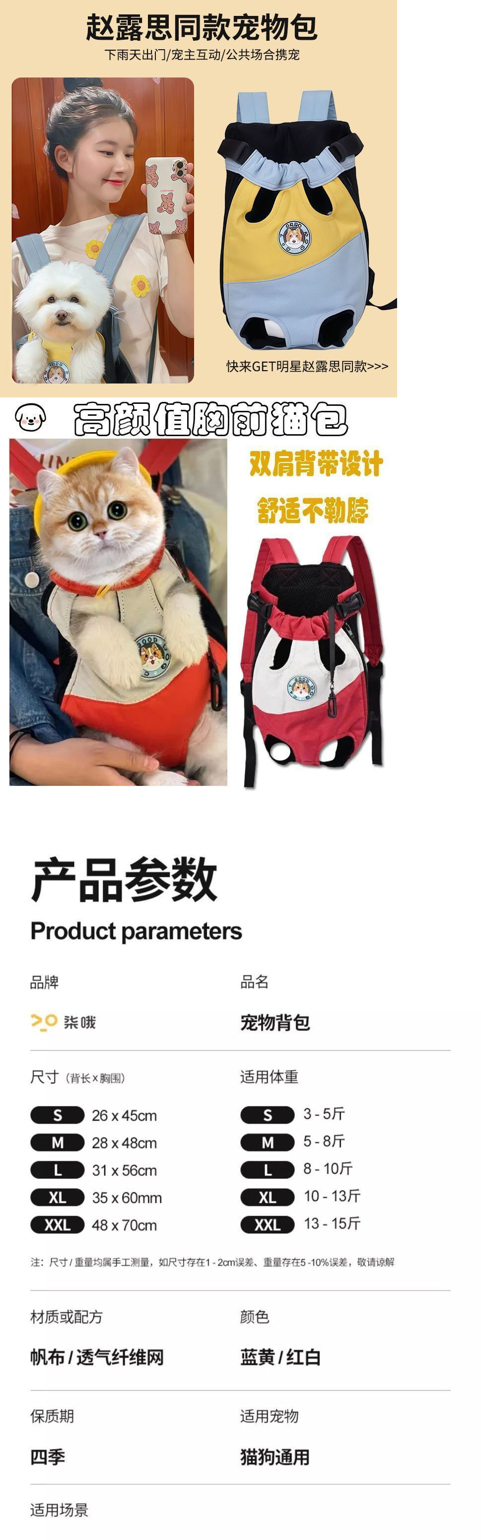 Zhao Lusi スタイル DONO 新しいペットバックパック外出ショルダーポータブル旅行ワンショルダー子犬通気性猫
