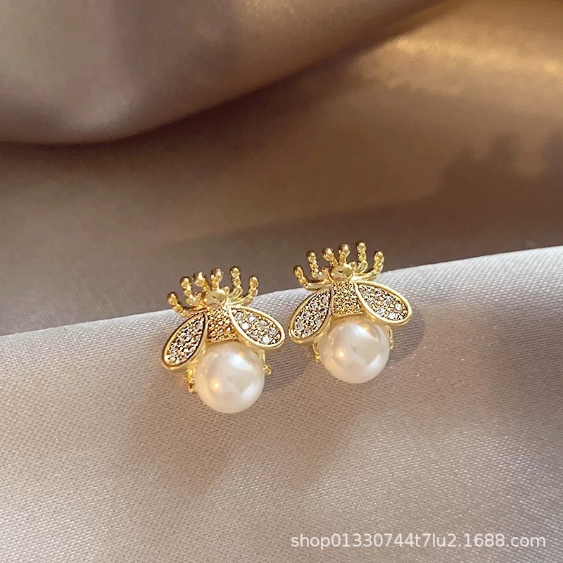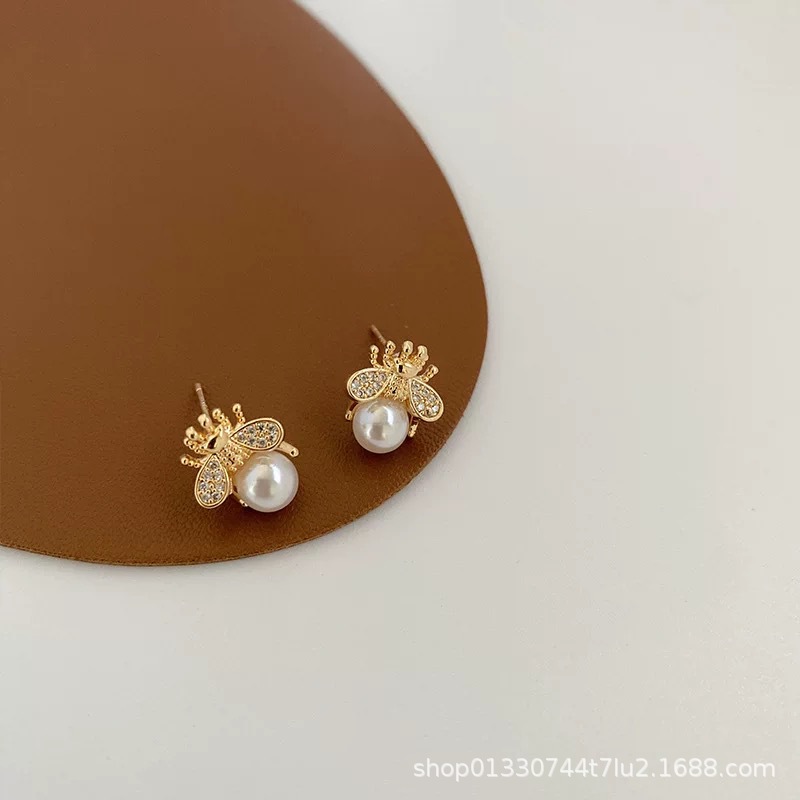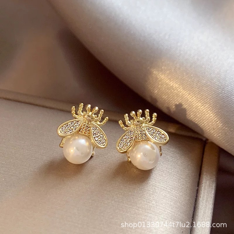 S925 シルバー針シンプルでコンパクトな蜂のイヤリング絶妙なニッチデザインイヤリングハイエンドパールイヤリング