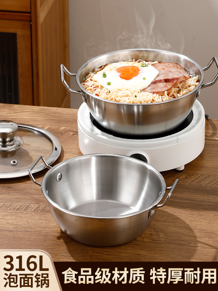韓国スープポット 316 ステンレス鋼一人用小鍋両耳調理麺インスタントラーメンポット電磁調理器ラーメンボウル