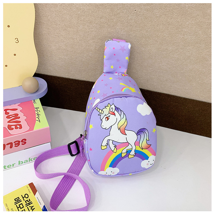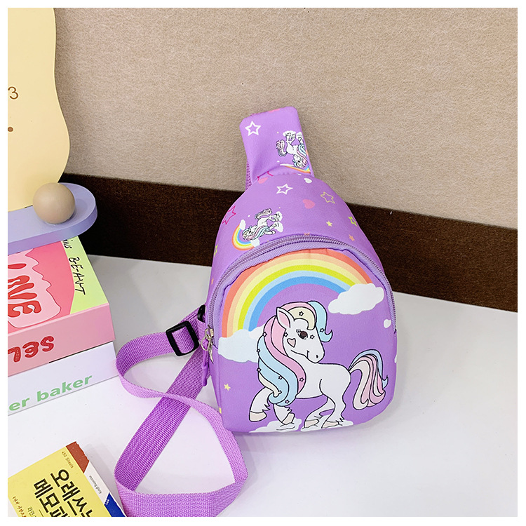 国境を越えた子供の胸に虹ユニコーンの小さな恐竜のプリントがかわいいシングルバッグ