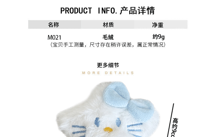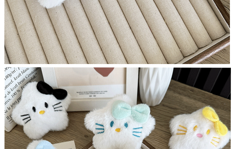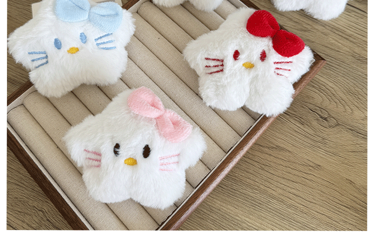 可爱卡通KT猫毛绒玩偶胸针DIY小猫蝴蝶结发饰包包服装配饰挂件