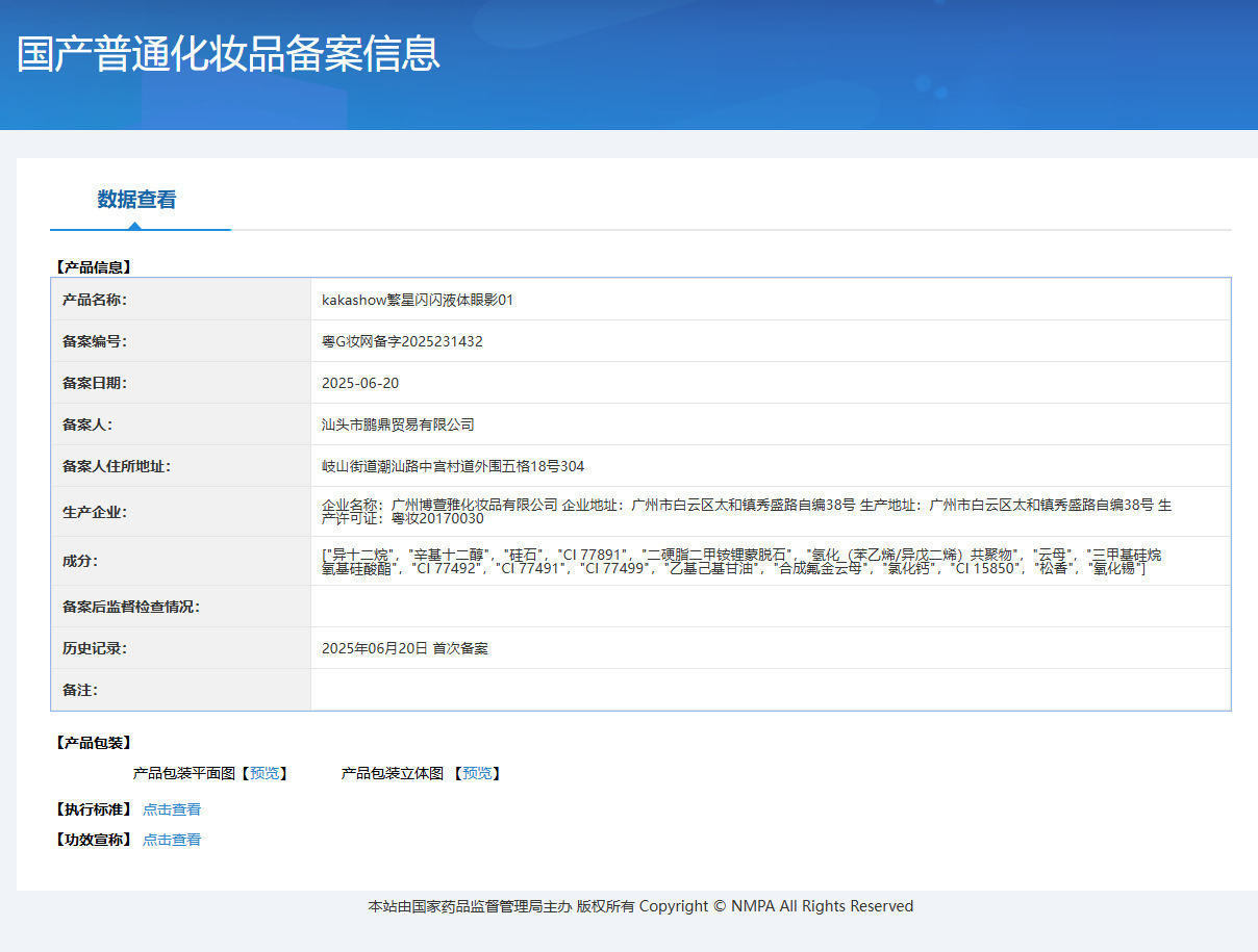 非特殊化粧品登録証番号 広東Gメイクアップネットワーク準備番号 2025231435