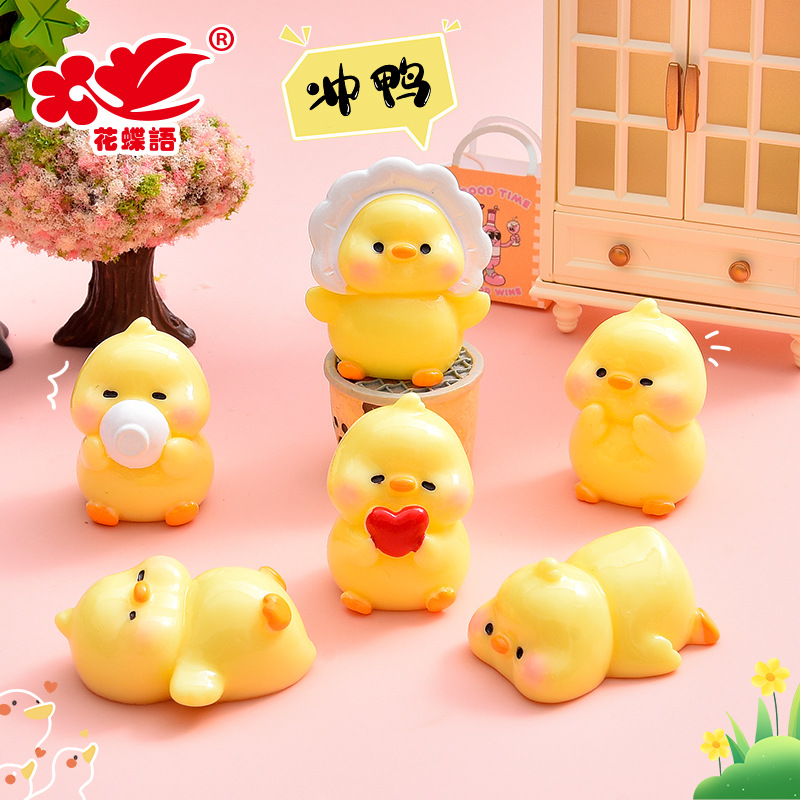 新しいかわいいアヒルの樹脂萌え粒人形屋diy装飾品デスクトップ車の小さな振り子クリーム材料