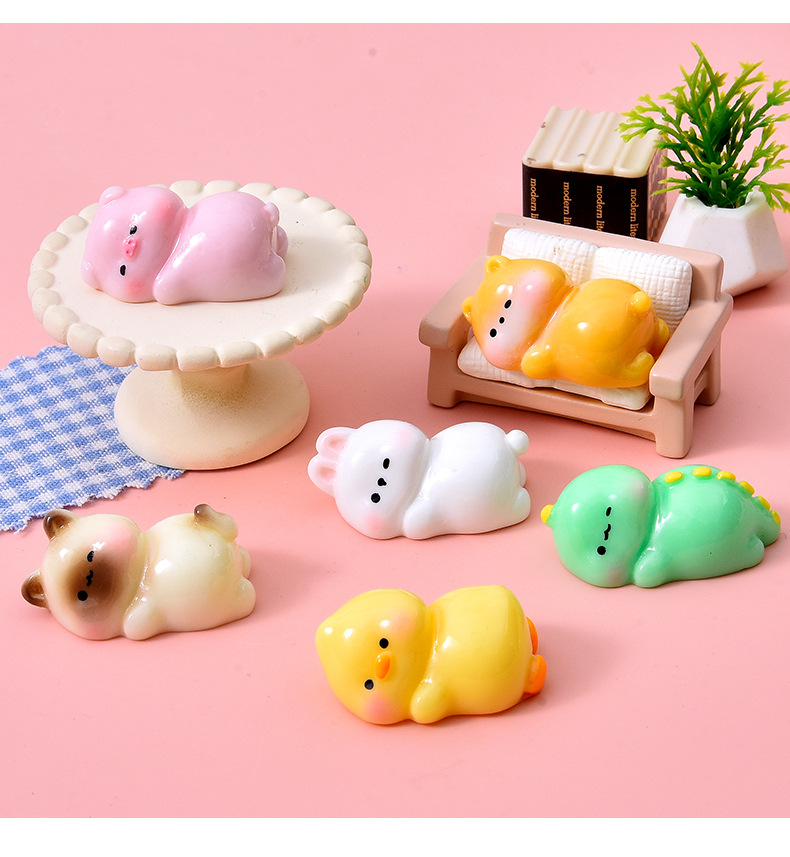 かわいい猫と豚、小動物樹脂アクセサリー、ドールハウス DIY 装飾、車のデスクトップ装飾品