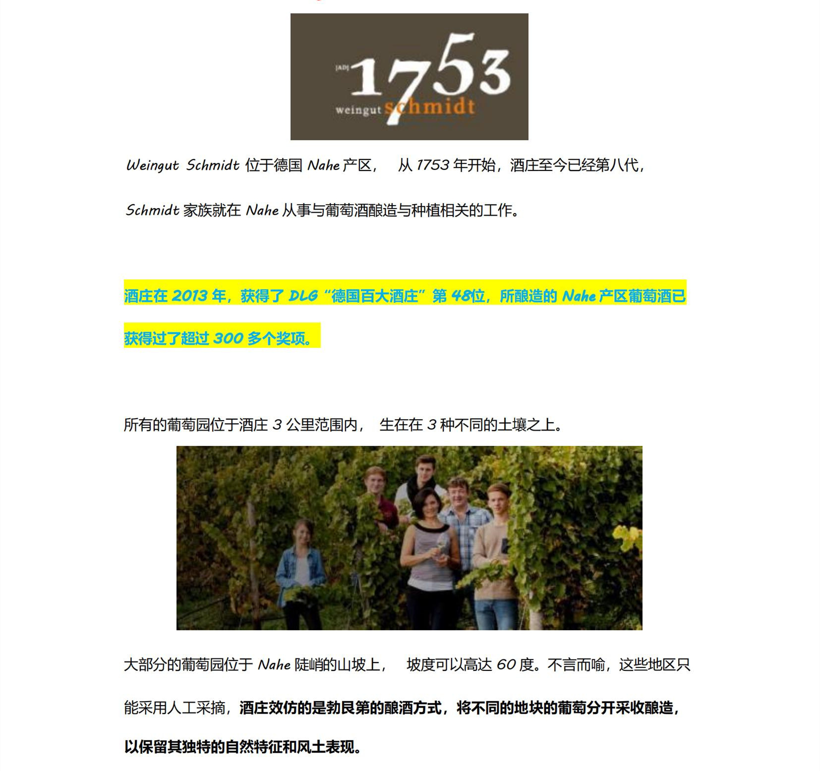 德国雷司令半甜白葡萄酒 那赫产区施密特酒庄