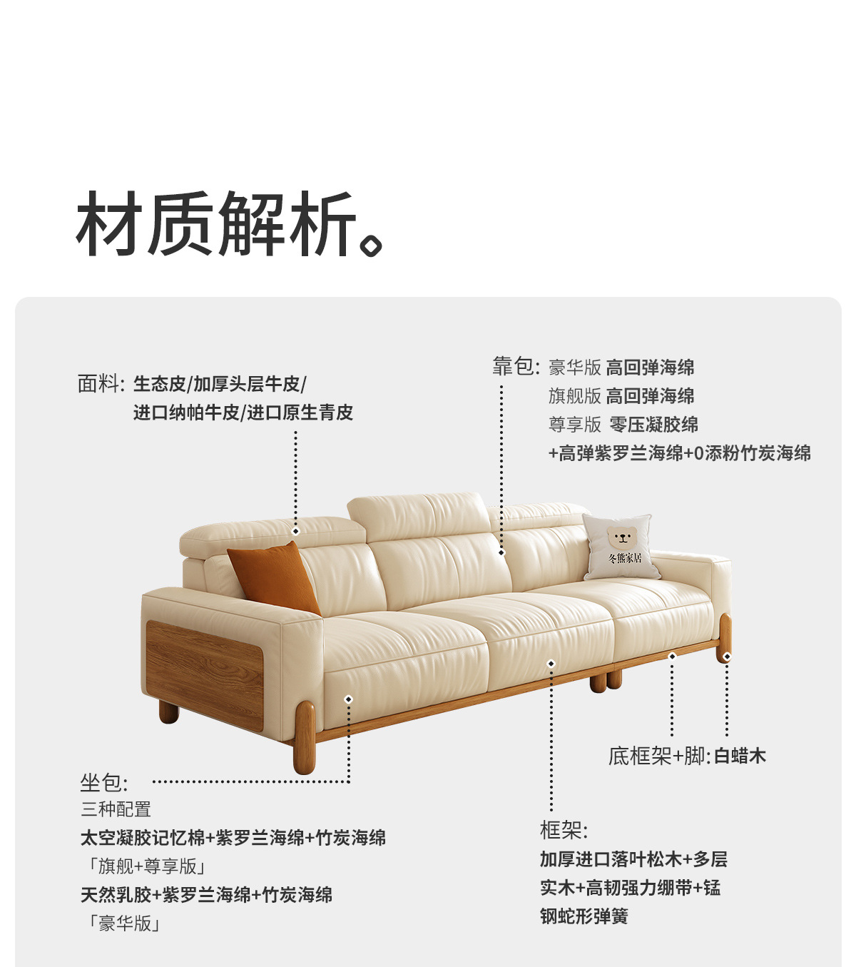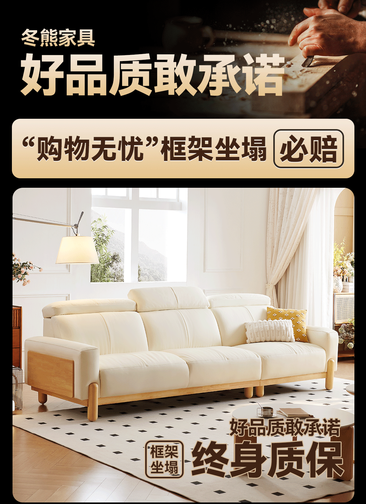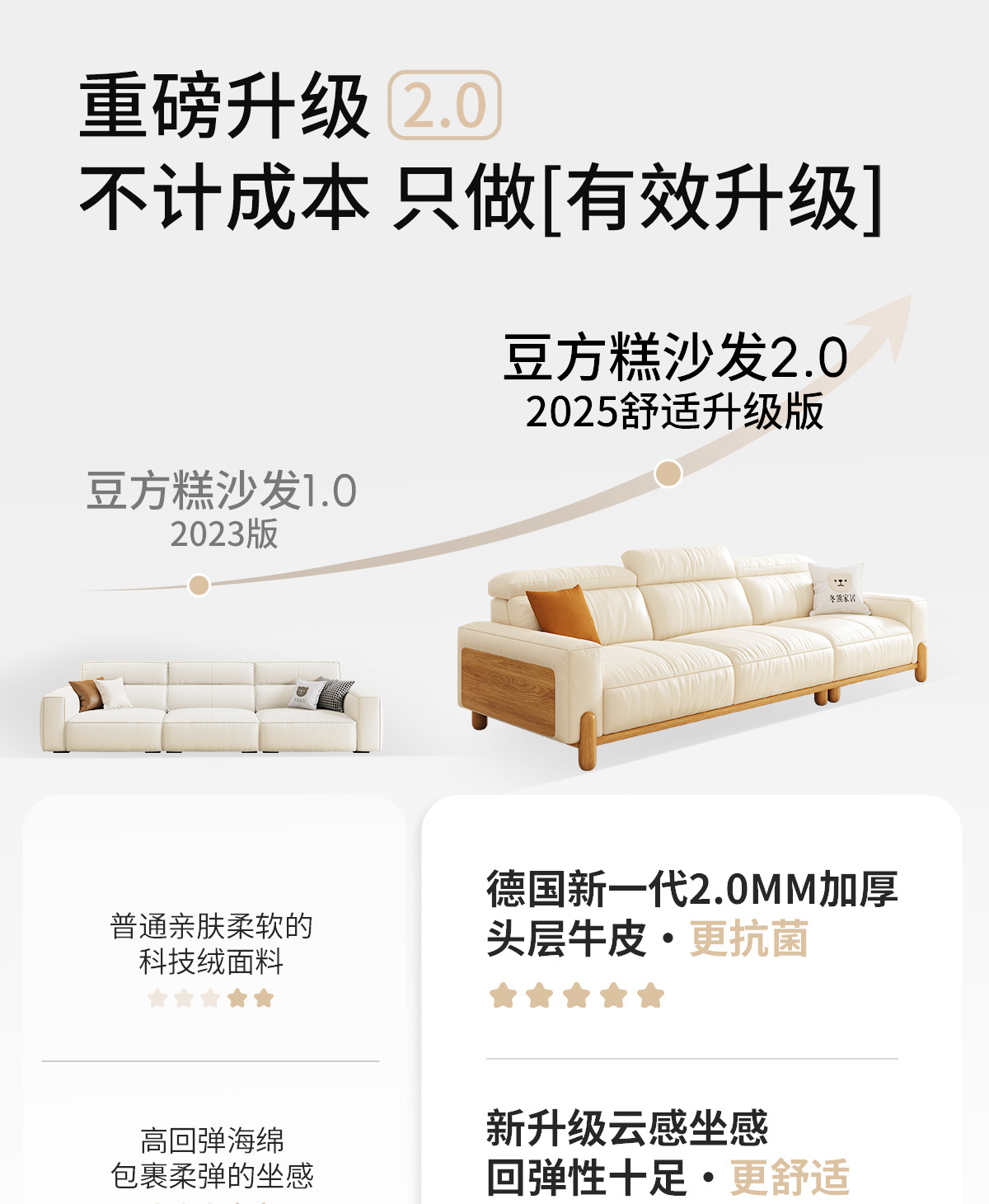 豆方糕皮艺ソファ22(無垢材フレーム)