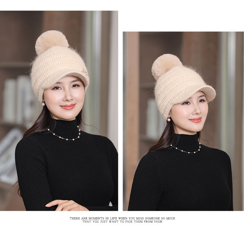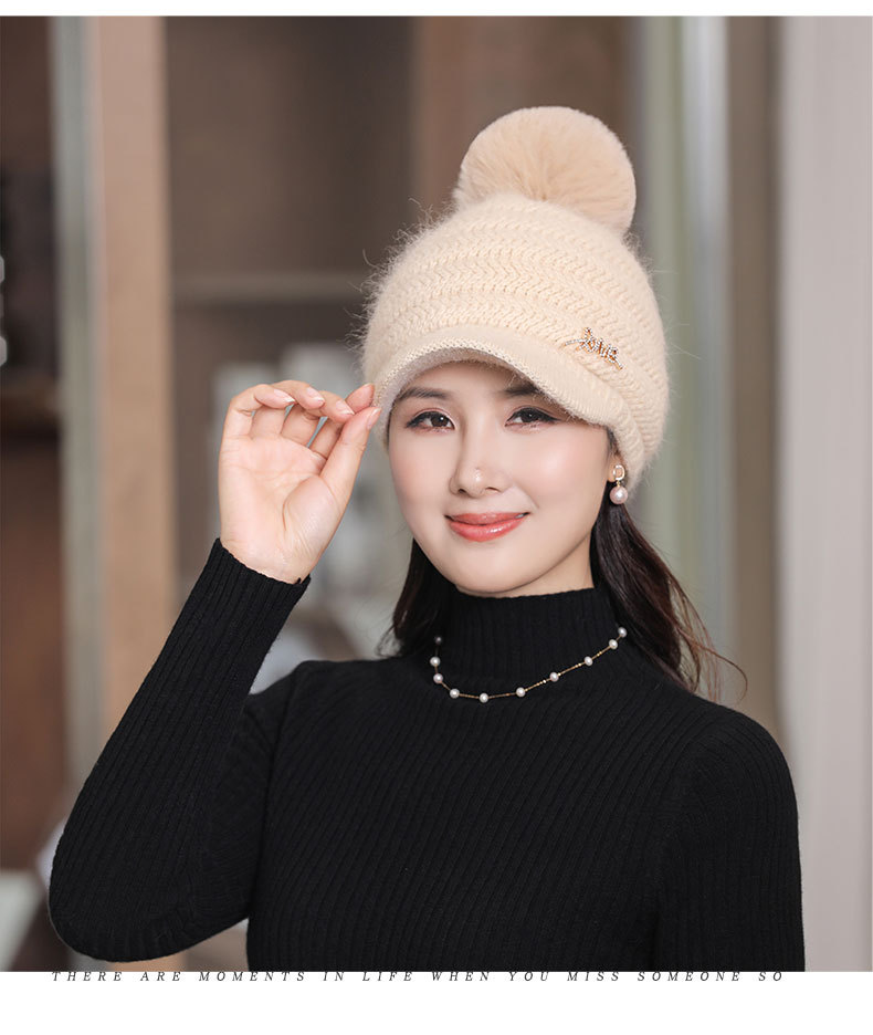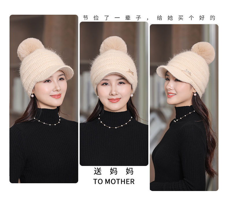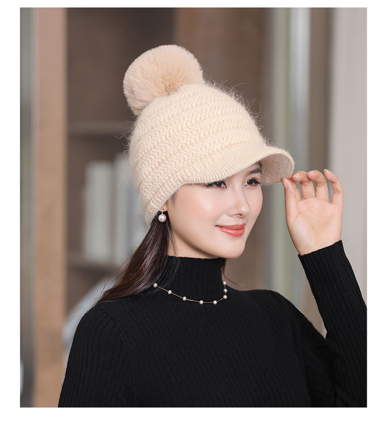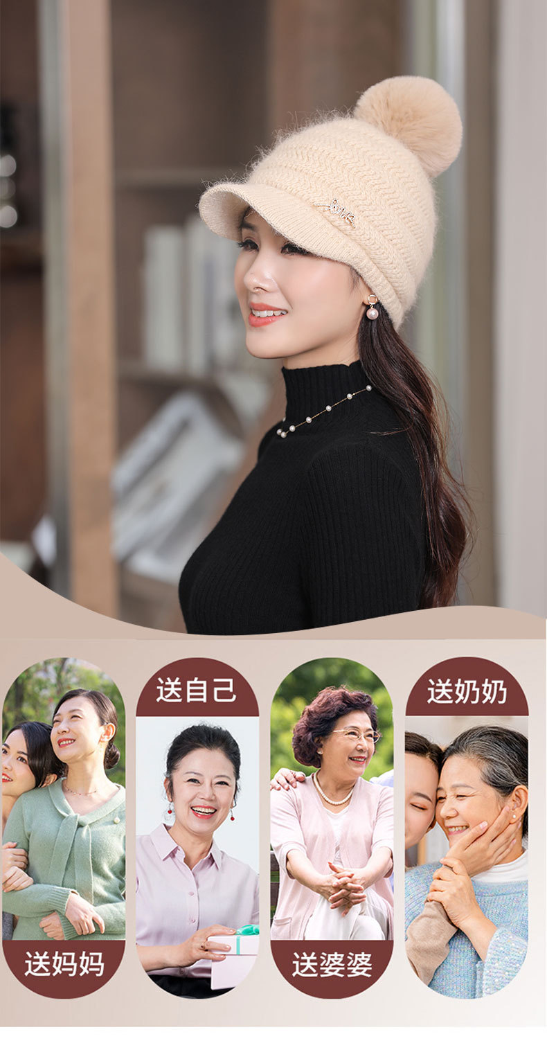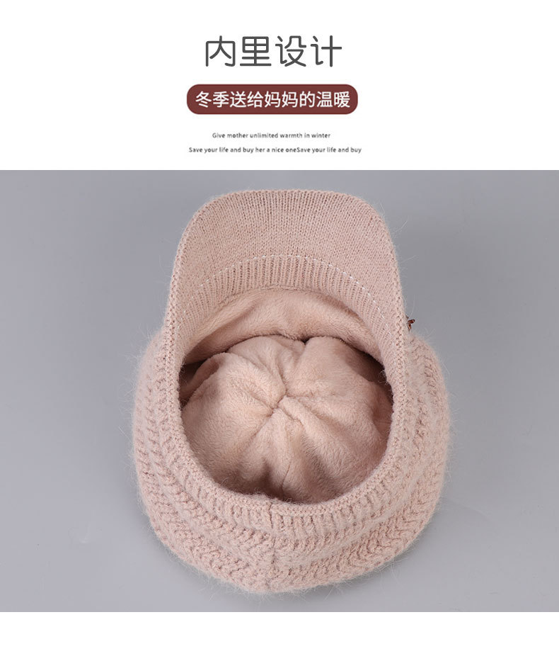 中高年女性、叔母、義母向けの新しい秋冬のつばの短いニットベルベット野球帽、毛玉耳保護ウール帽子