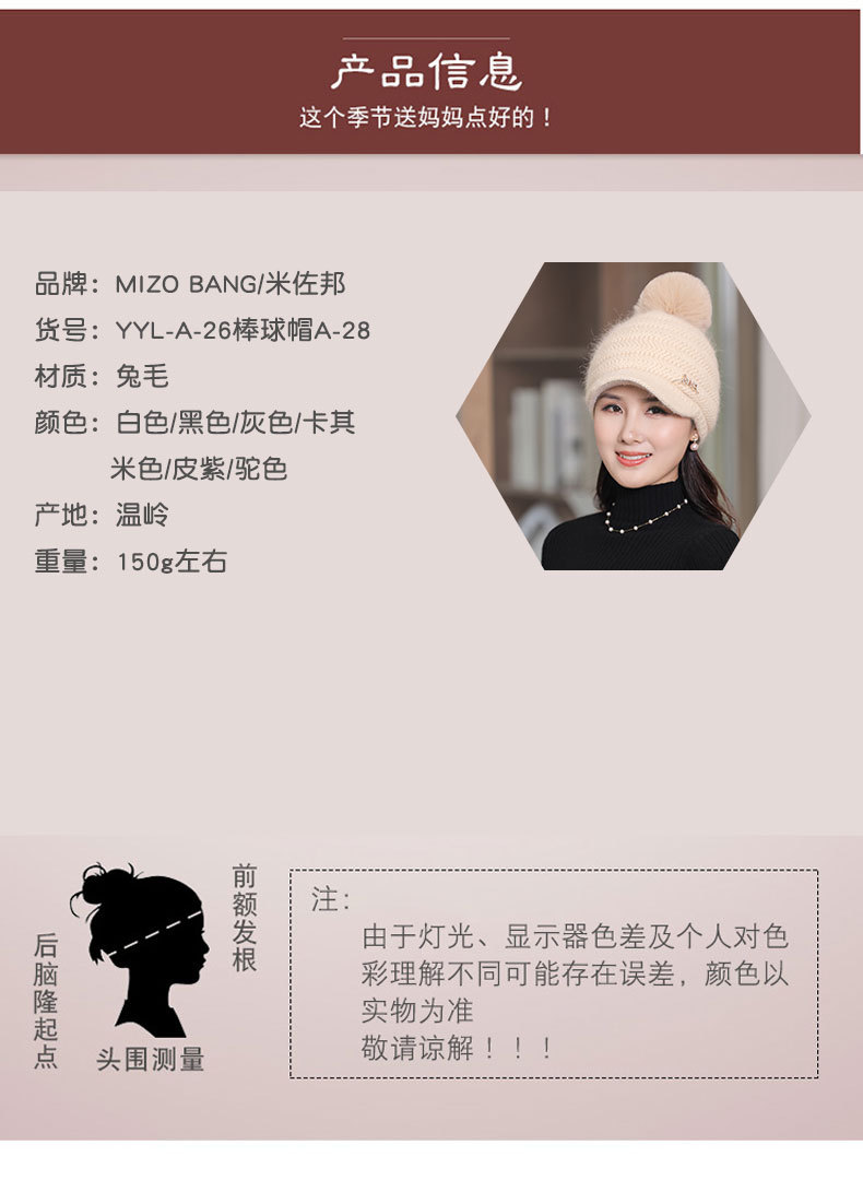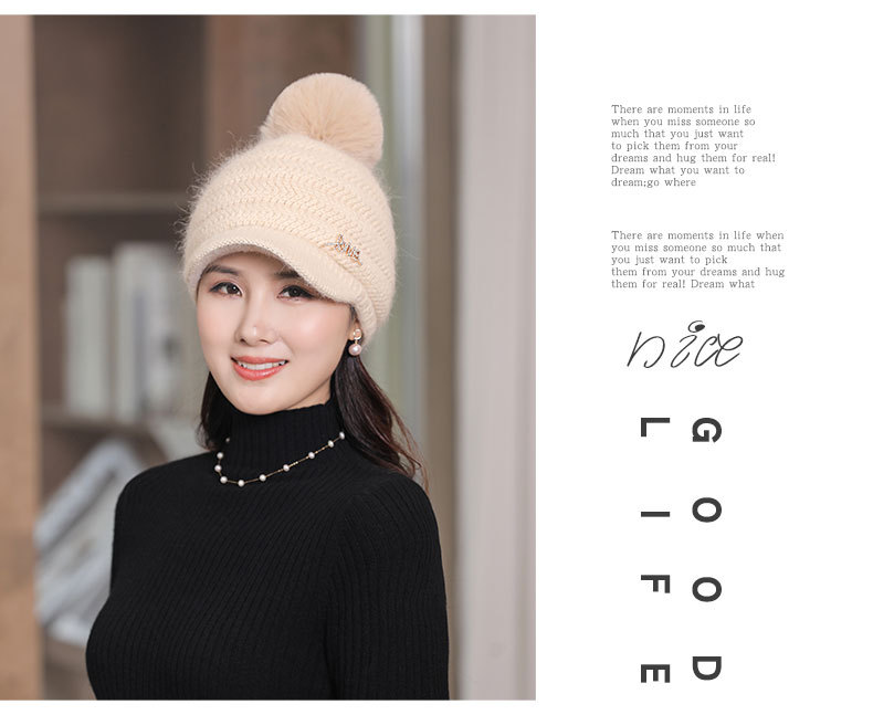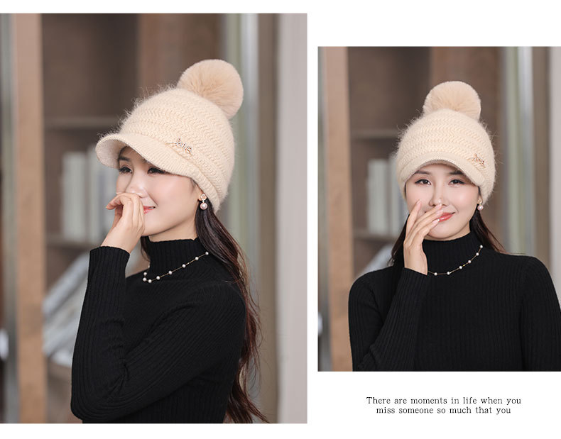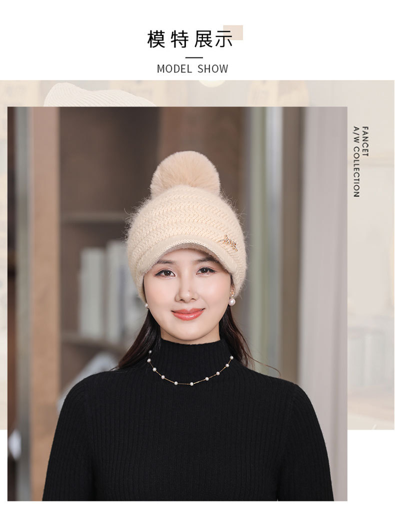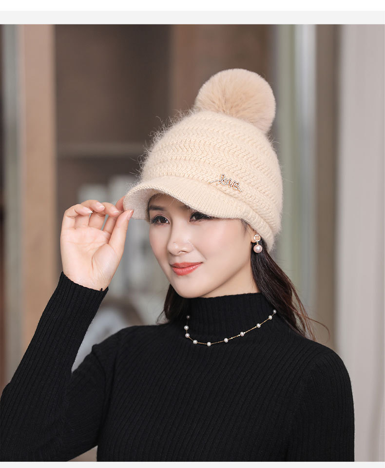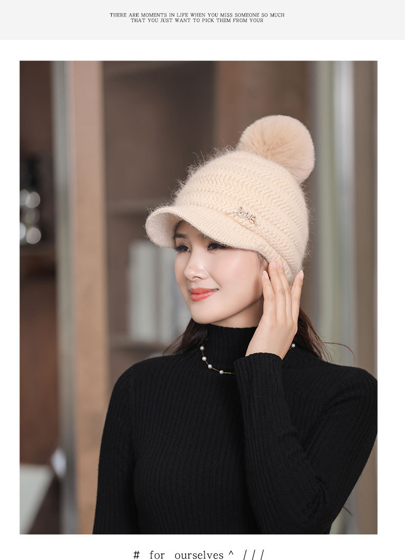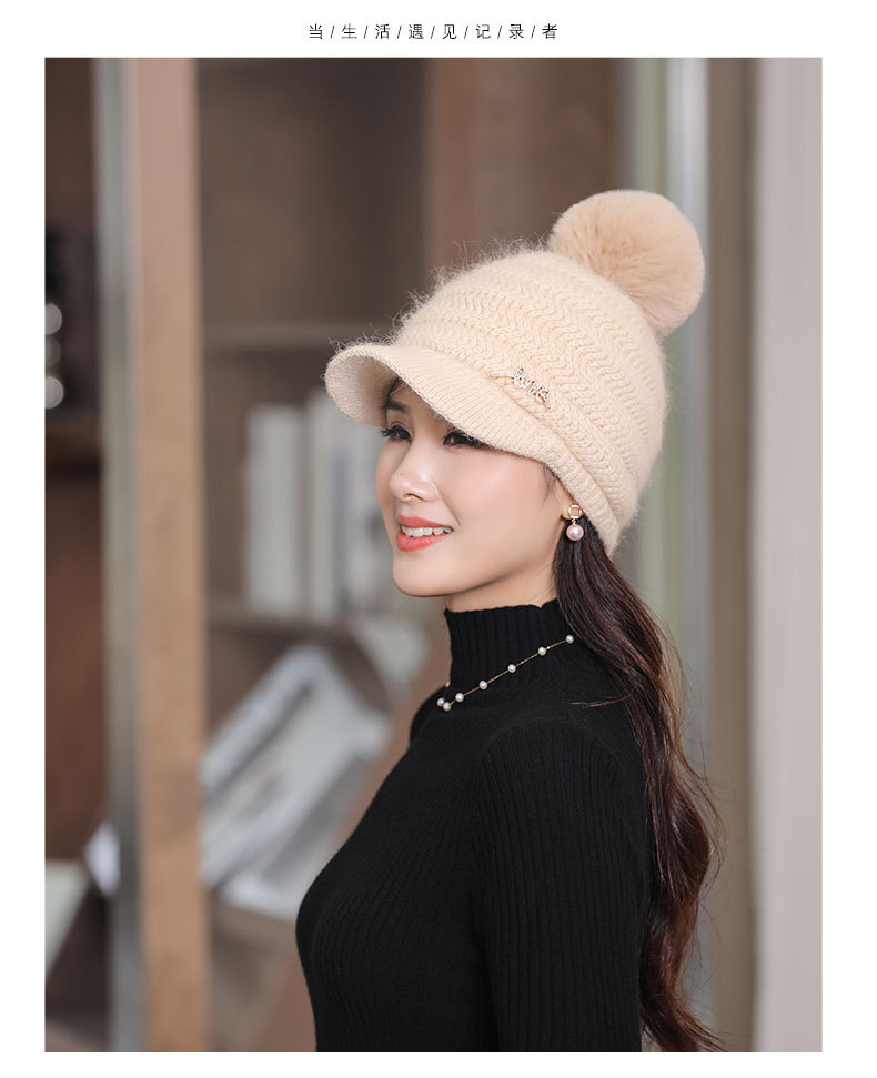 中高年女性、叔母、義母向けの新しい秋冬のつばの短いニットベルベット野球帽、毛玉耳保護ウール帽子