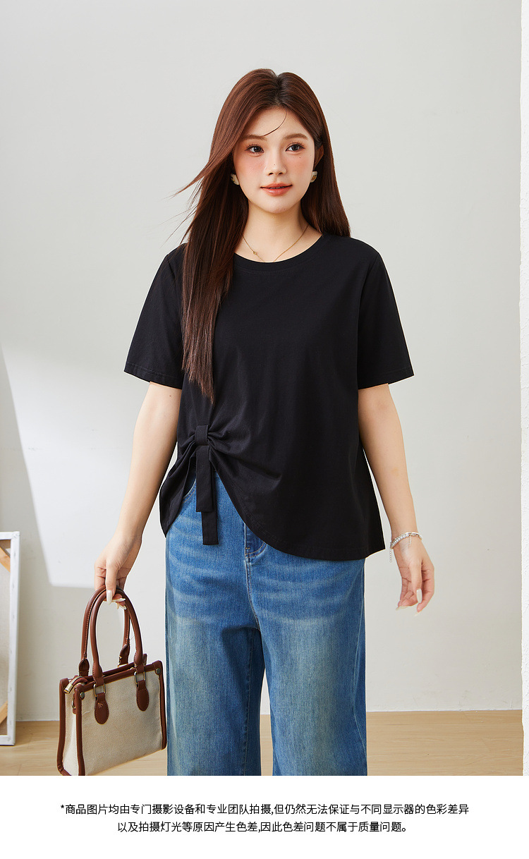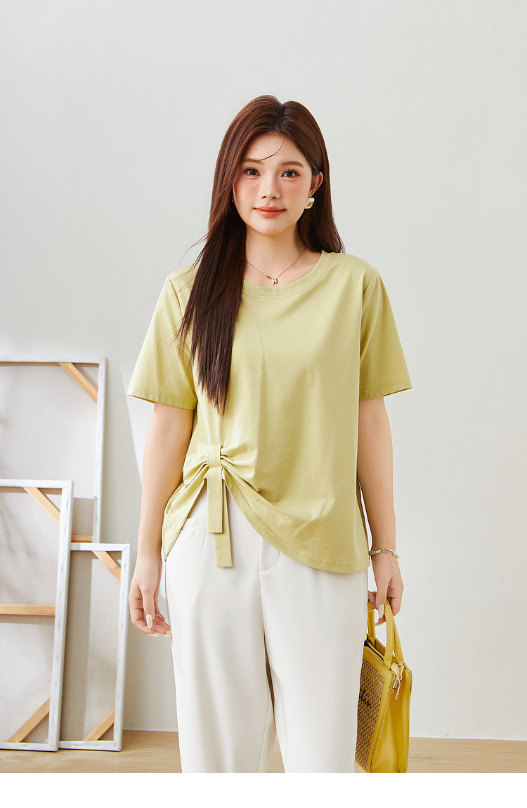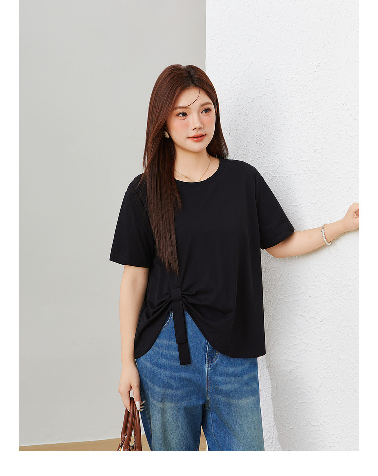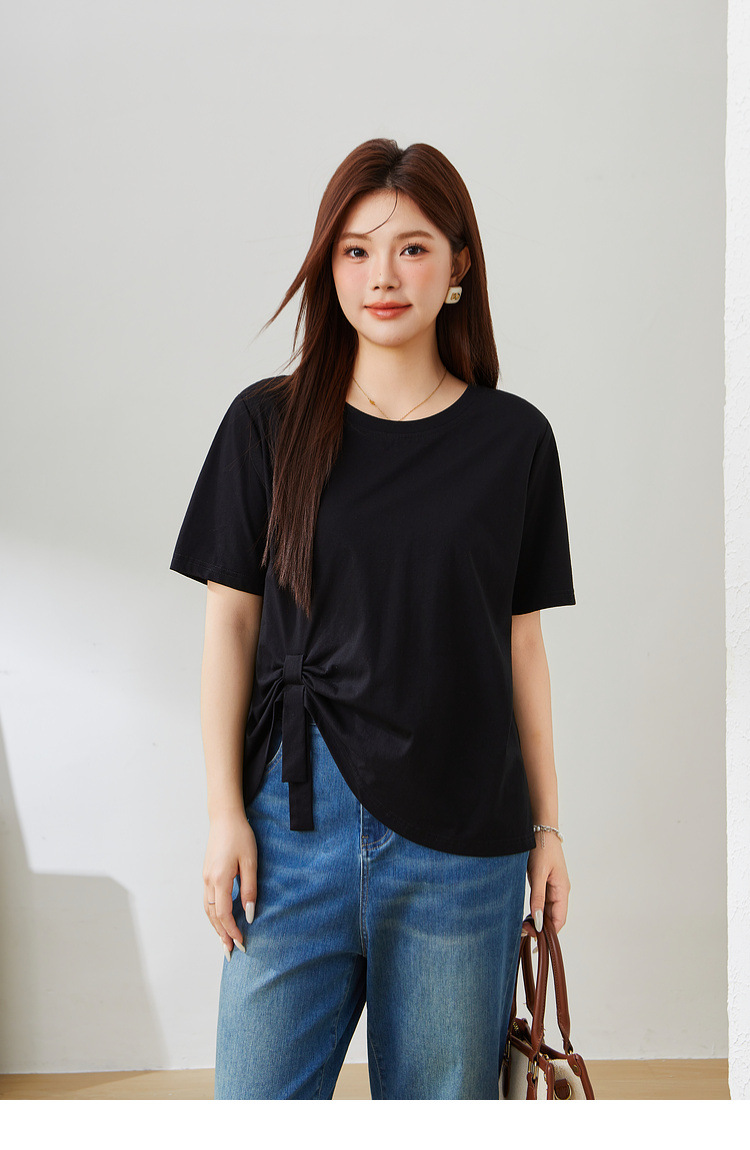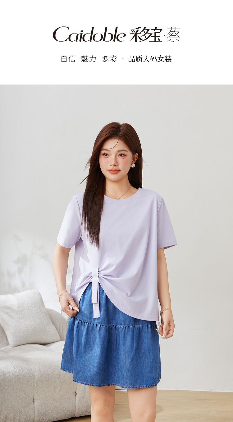 Caiduobao プラスサイズの女性のファット mm2025 夏の新しい不規則なリボンデザインスリム T シャツ EXZ5369